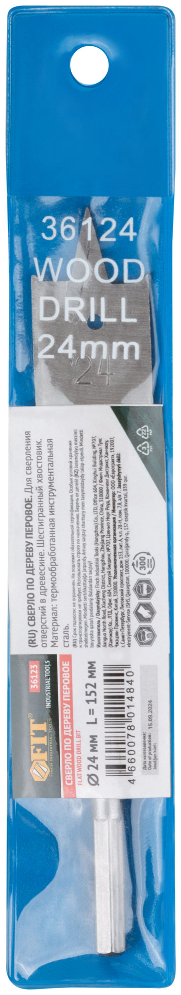 Перовое, L=152 мм, шестигранный хвостовик. Материал: инструментальная сталь. Упаковка: п/э пакет.