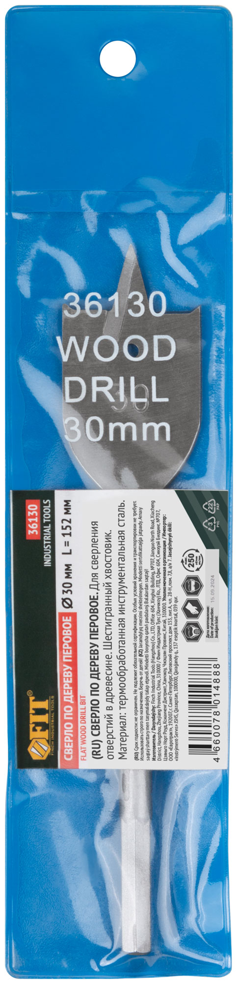 Перовое, L=152 мм, шестигранный хвостовик. Материал: инструментальная сталь. Упаковка: п/э пакет.