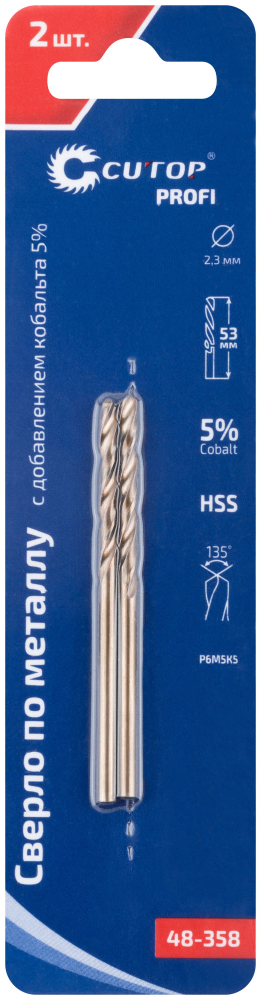 Сверло по металлу Cutop Profi с кобальтом 5% 2,3 x 53 мм, 2 шт.