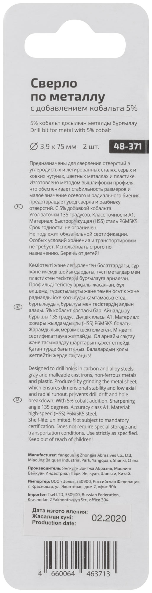 Сверло по металлу Cutop Profi с кобальтом 5% 3,9 x 75 мм, 2 шт.