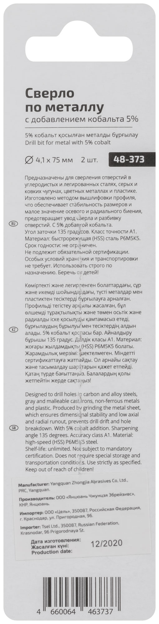 Сверло по металлу Cutop Profi с кобальтом 5% 4,1 x 75 мм, 2 шт.