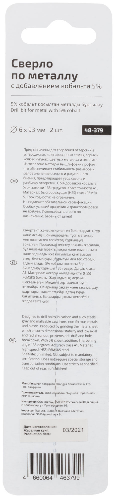 Сверло по металлу Cutop Profi с кобальтом 5% 6 x 93 мм, 2 шт.