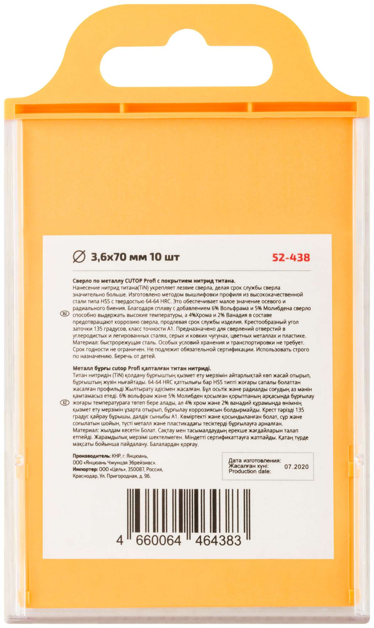 Сверло по металлу Cutop Profi с титановым покрытием, 3,6х70 мм (10 шт)