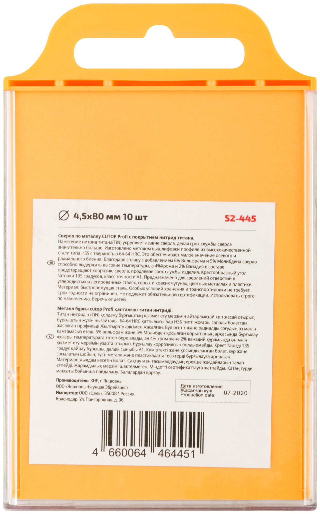 Сверло по металлу Cutop Profi с титановым покрытием, 4,5х80мм (10 шт)