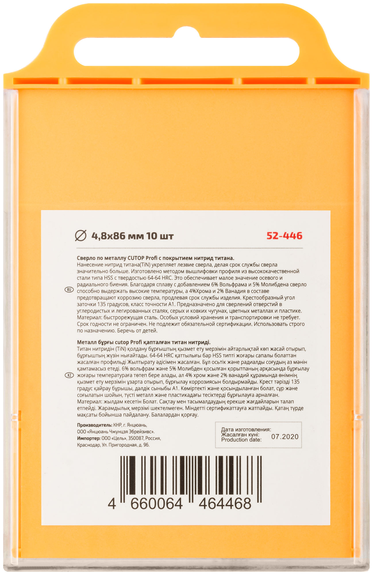 Сверло по металлу Cutop Profi с титановым покрытием, 4,8х86 мм (10 шт)