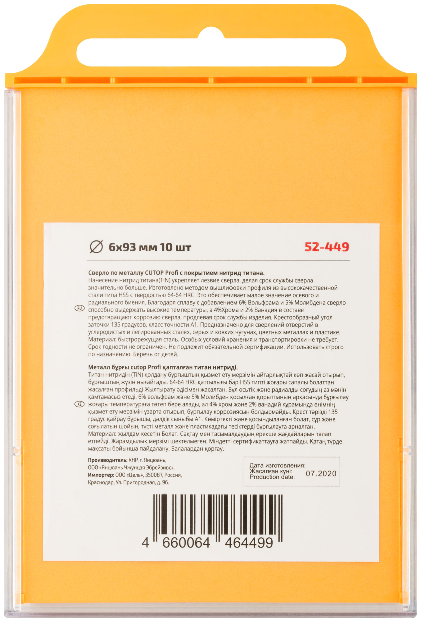 Сверло по металлу Cutop Profi с титановым покрытием, 6х93 мм (10 шт)