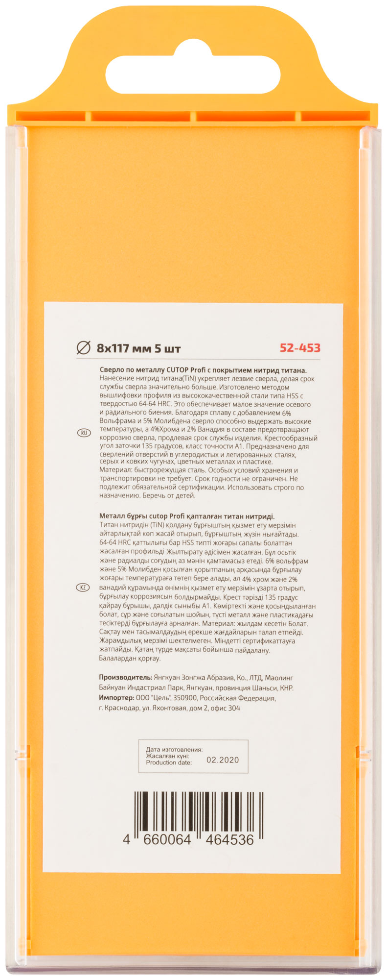 Нанесение нитрид титана(TiN) укрепляет лезвие сверла, делая срок службы сверла значительно больше. Изготовлено методом вышлифовки профиля из высококачественной стали типа HSS с твердостью 64-64 HRC. Это обеспечивает малое значение осевого и радиального биения. Благодаря сплаву с добавлением 6% Вольфрама и 5% Молибдена сверло способно выдержать высокие температуры, а 4% Хрома и 2% Ванадия в составе предотвращают коррозию сверла, продлевая срок службы изделия. Крестообразный угол заточки 135°, класс точности А1. Предназначено для сверлений отверстий в углеродистых и легированных сталях, серых и ковких чугунах, цветных металлах и пластике. Материал: быстрорежущая сталь. Упаковка: подвесной пластиковый бокс.пластиковый бокс.