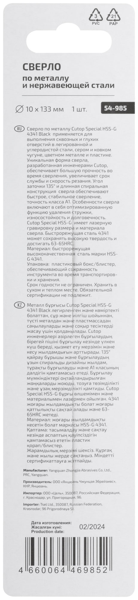 Сверло по металлу Cutop Special, HSS-G, 10 х 133/78 мм (1 шт)