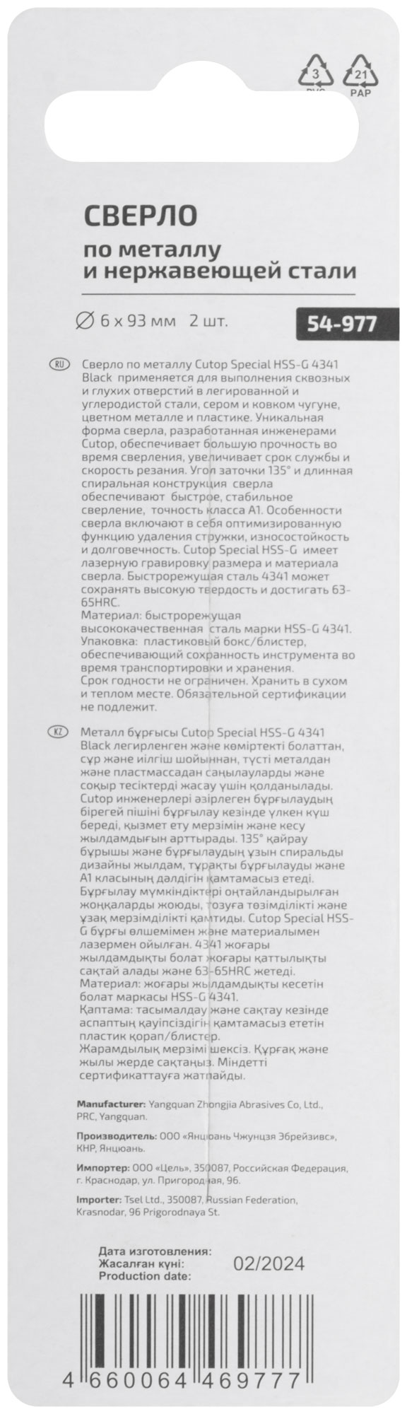 Сверло по металлу Cutop Special, HSS-G, 6 х 93/51 мм (2 шт)