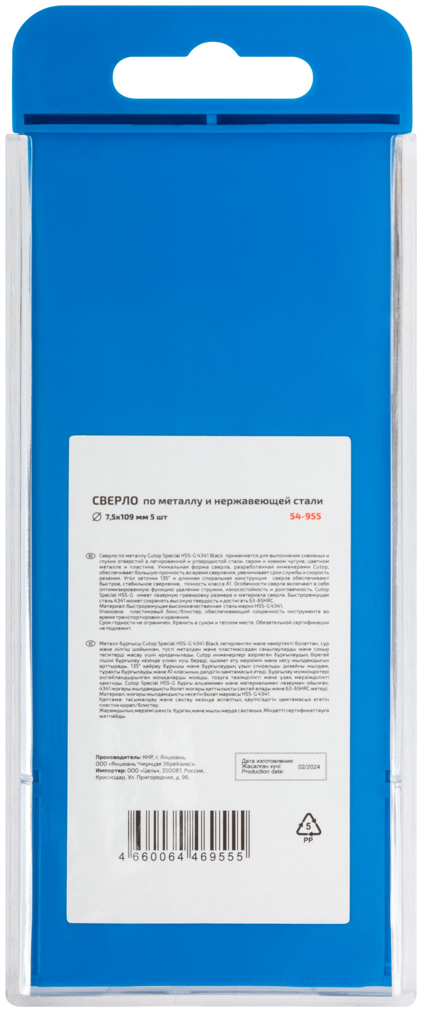 Сверло по металлу Cutop Special, HSS-G, 7,5 х 109/62 мм (5 шт)