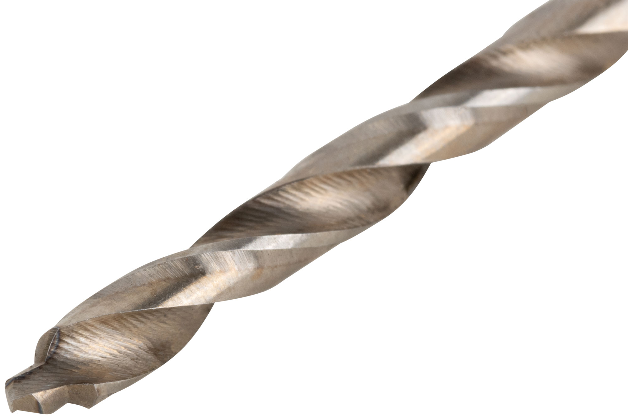 Профи. DIN 338. С 5% добавкой кобальта. Для профессионального использования. Ступенчатая заточка наконечника позволяет засверливаться быстро и без дополнительного кернения. Класс точности А1. Угол заточки 135°. Вышлифованный профиль. 33860-33862 - цилиндрический хвостовик; 33864-33878 - трехгранный хвостовик. Материал: быстрорежущая (HSS) сталь Р6М5К5. Упаковка: блистер.