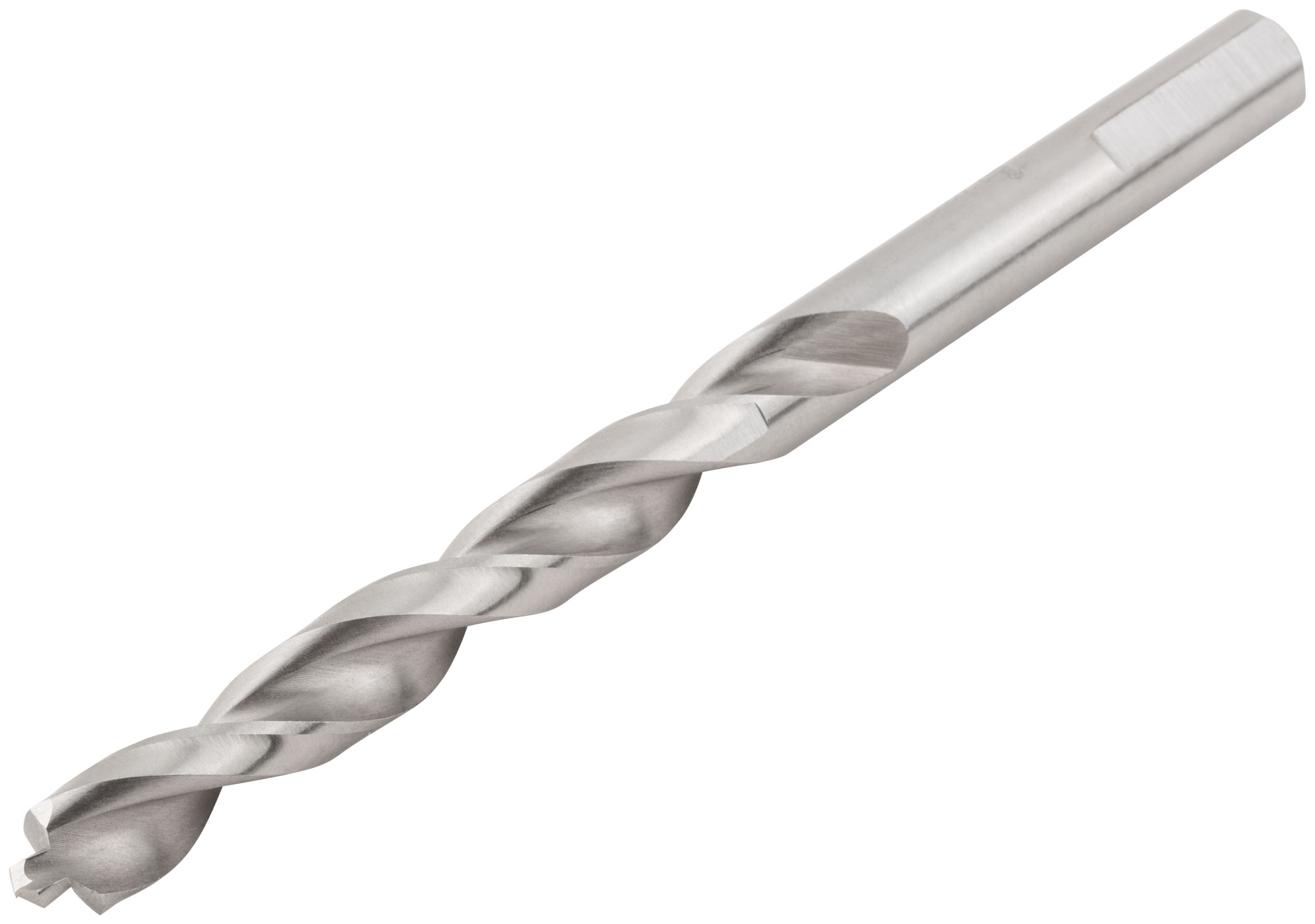 DIN 338. 33831-33834 - цилиндрический хвостовик, 33835-33848 - трехгранный хвостовик. Полированное. C двухплоскостной заточкой. Центровочный наконечник позволяет сверлить без предварительного кернения. Класс точности А1. Угол заточки 135°. Материал: быстрорежущая (HSS) сталь Р6М5. Упаковка: блистер.