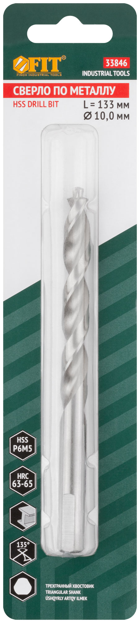 Сверло по металлу HSS полированное, центровочный наконечник, Р6М5, блистер 10,0х133 мм ( 1 шт.)