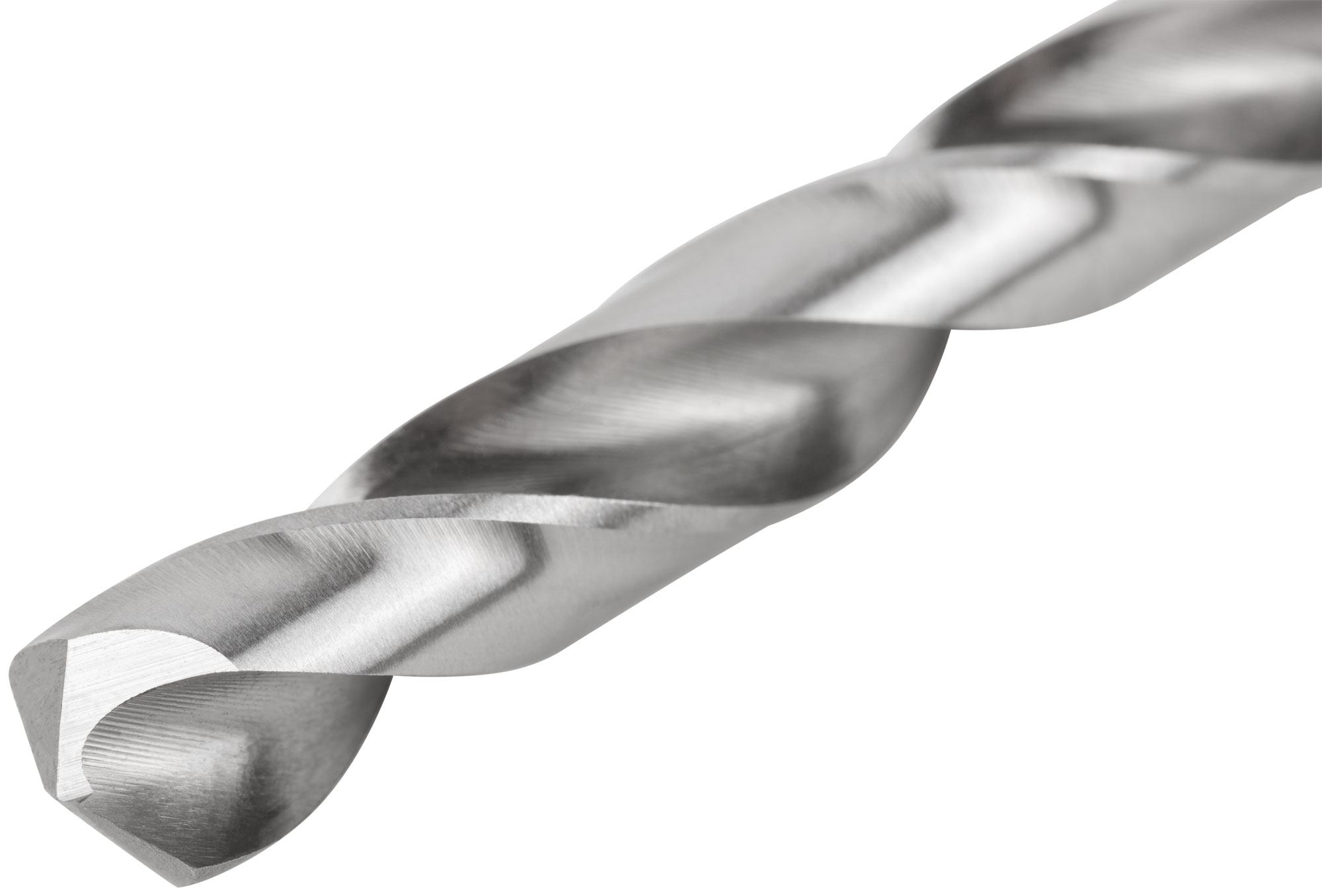 DIN338. Цилиндрический хвостовик. Изготовленно методом полной вышлифовки. Угол заточки 135°. Твердость: 61-64HRC. Материал: быстрорежущая сталь с повышенным содержанием вольфрама, молибдена и ванадия. Упаковка: блистер.