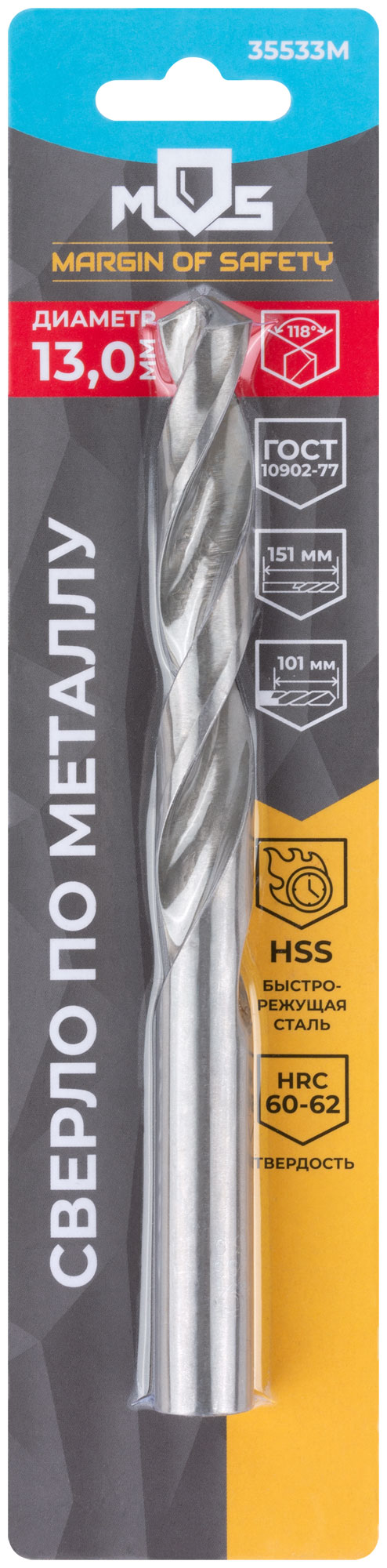 Сверло по металлу HSS в блистере, угол заточки 118°, 13,0 x 151 мм (1 шт.)