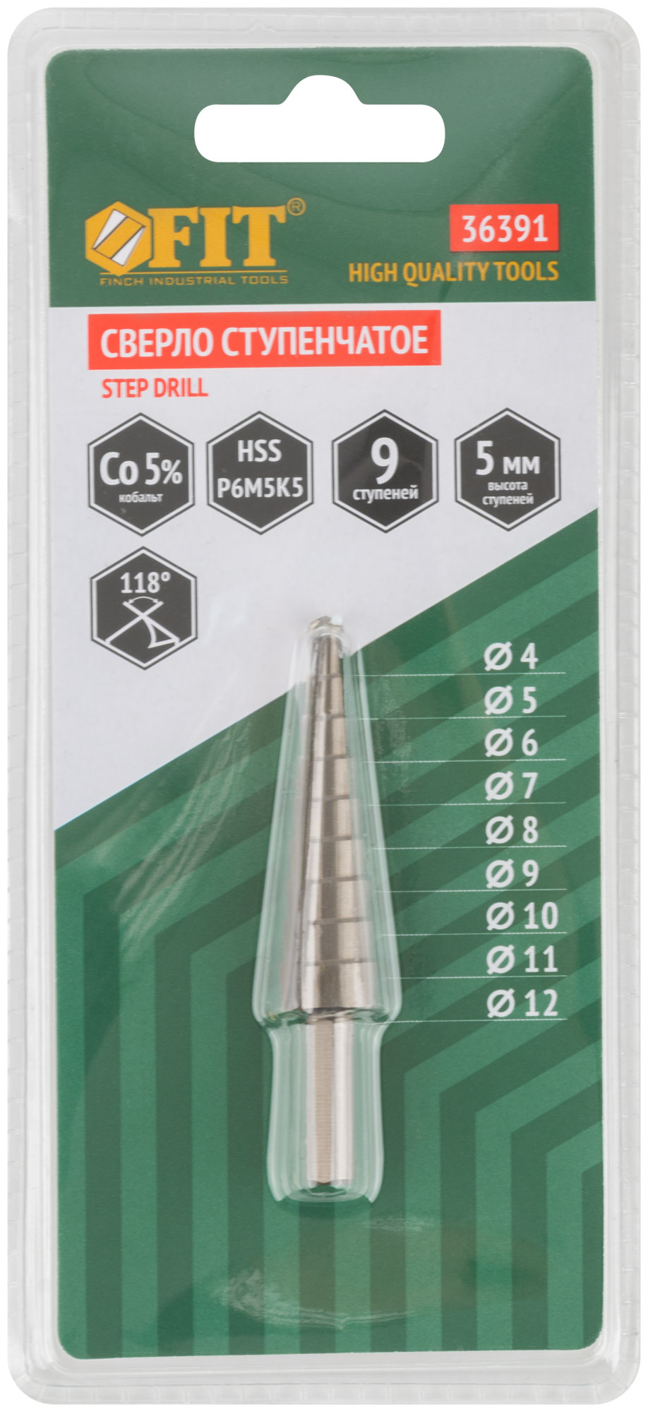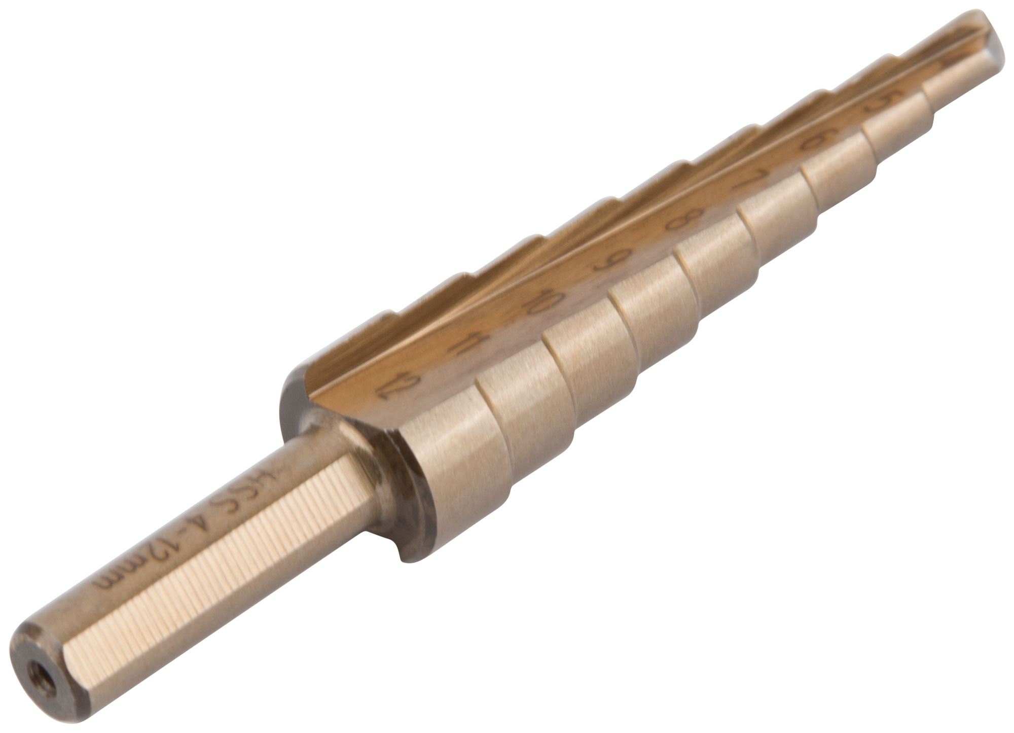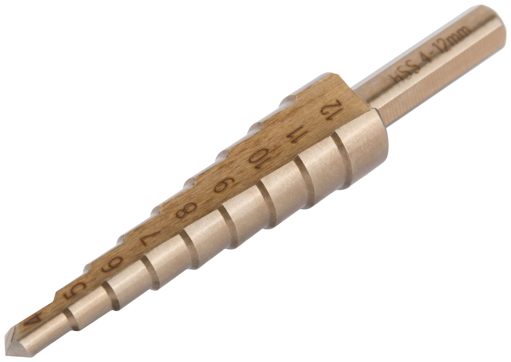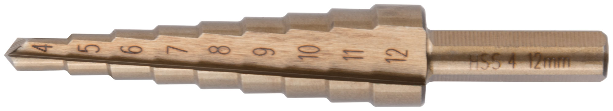 Сверло ступенчатое HSS Co5% ( Р6М5К5 ) по металлу, 9 ступеней, 4-12 мм