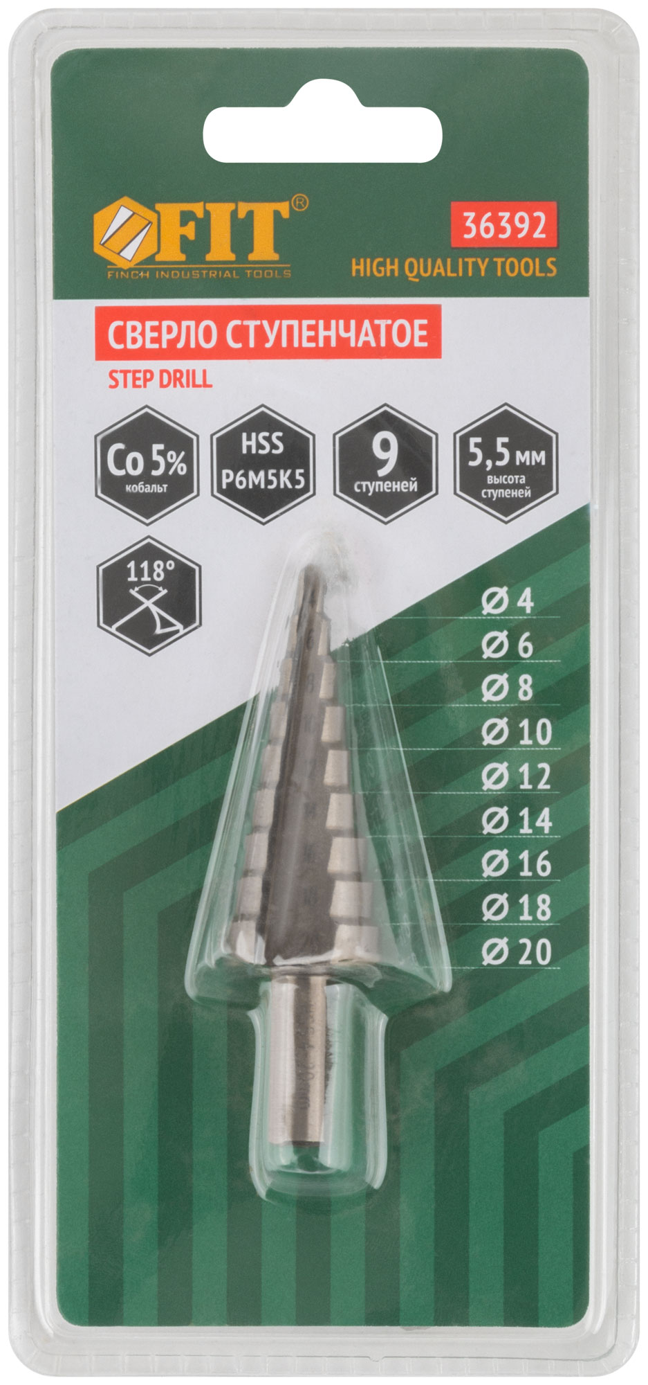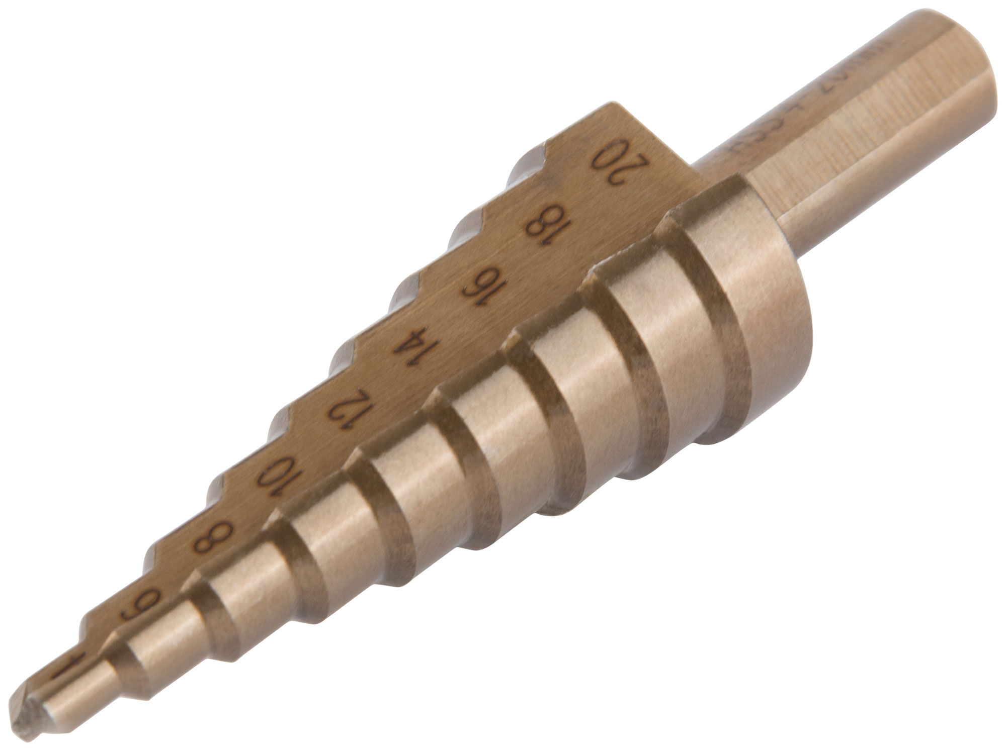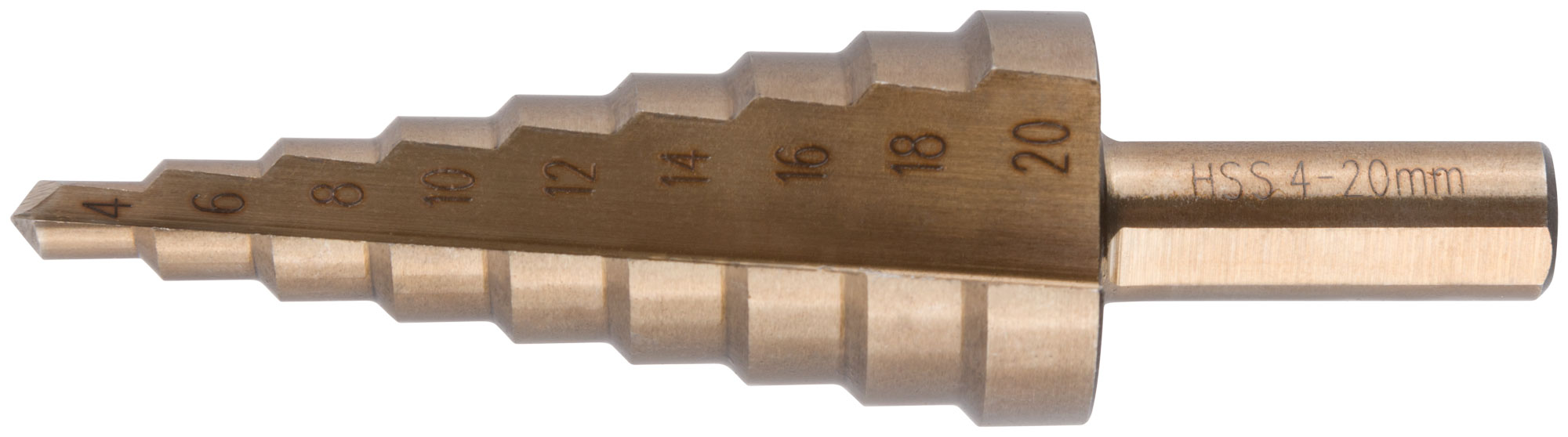 Сверло ступенчатое HSS Co5% ( Р6М5К5 ) по металлу, 9 ступеней, 4-20 мм