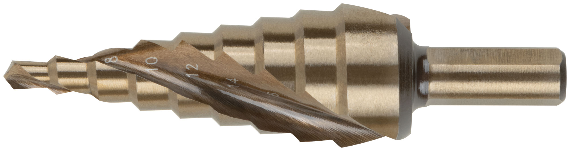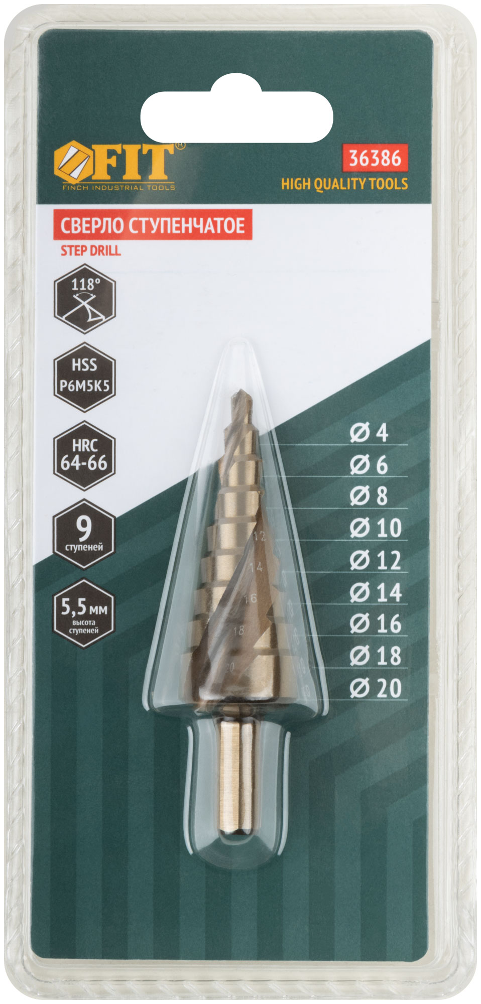Сверло ступенчатое HSS Co5% ( Р6М5К5 ) по металлу, спиральный профиль, 9 ступеней, 4-20 мм