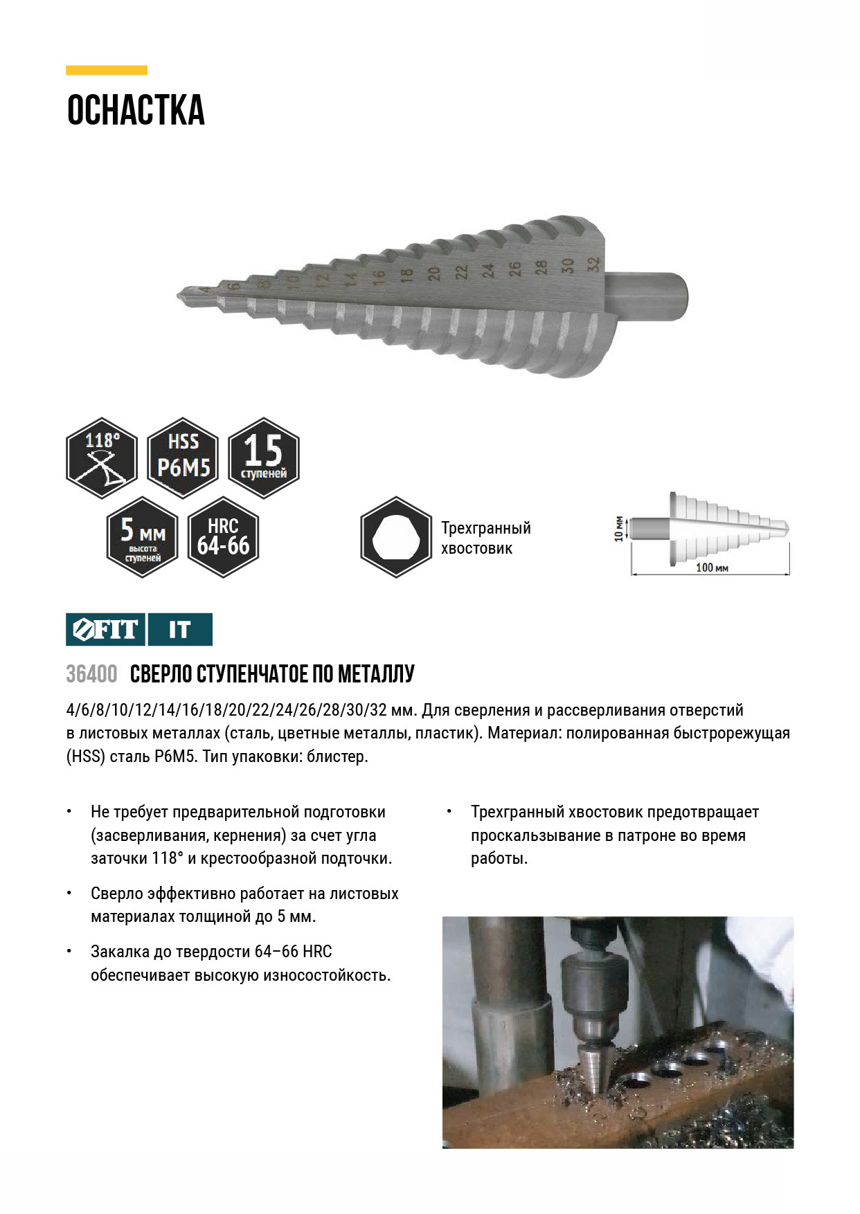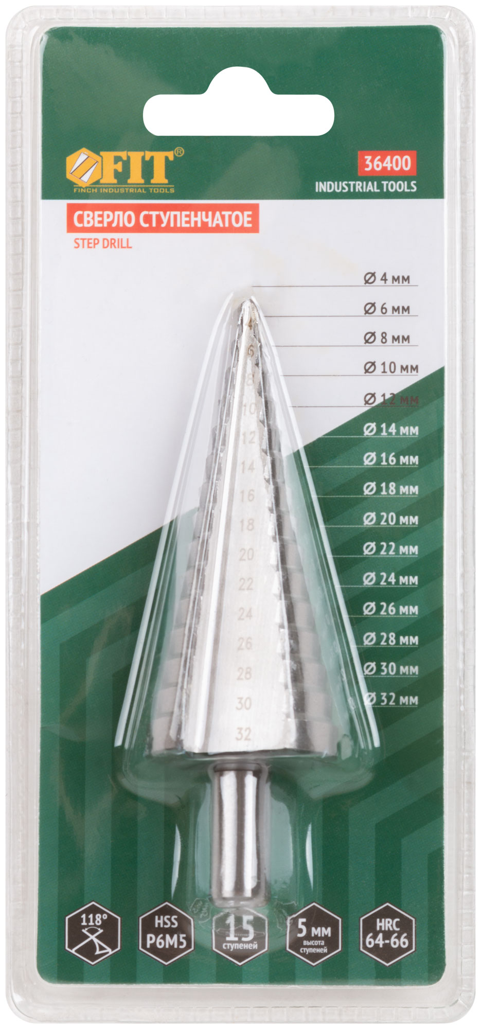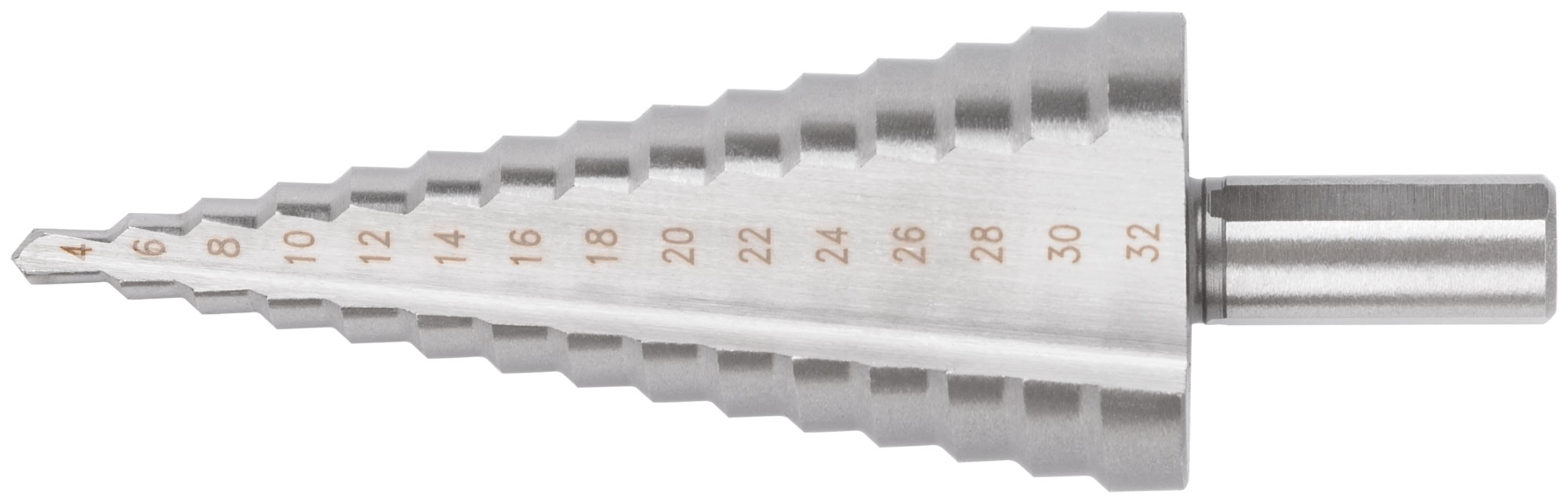 Сверло ступенчатое HSS ( Р6М5 ) по металлу, 15 ступеней, 4-32 мм