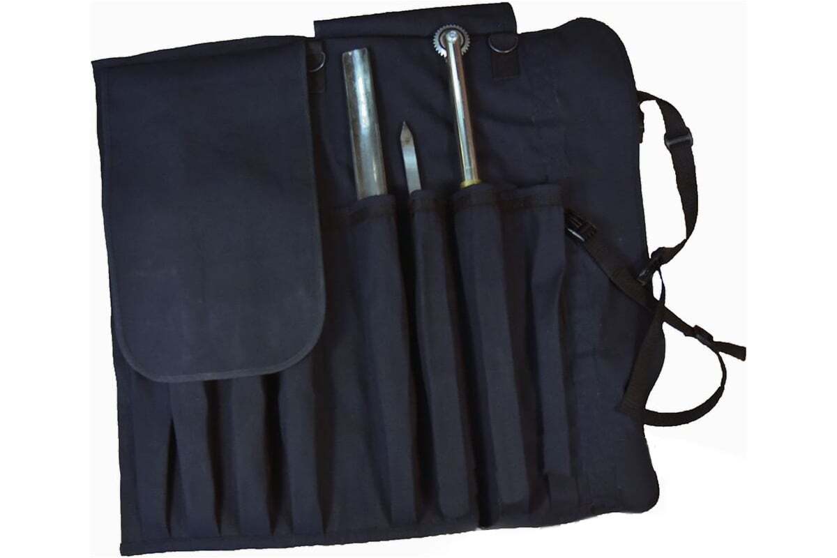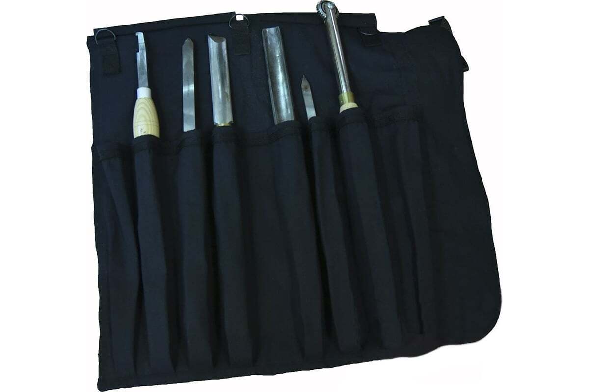 Тканевая сумка-скрутка для токарных резцов Петроградъ 8 карманов М00013460 изготовлена из износостойкой хлопковой ткани. Подходит для резцов, стамесок и других инструментов длиной до 46 см. Имеет ручку для переноски.
