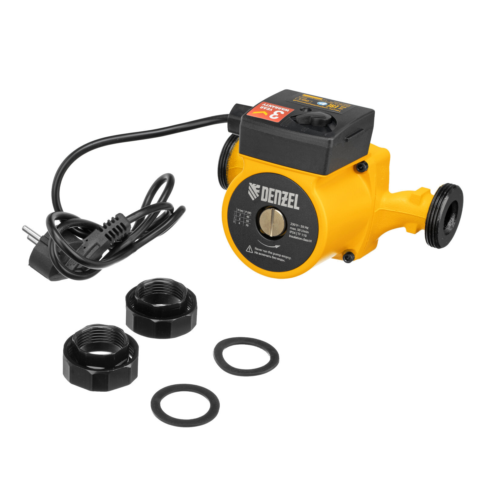 • Универсальность — насос поставляется с комплектом переходных гаек, поэтому его можно устанавливать на трубы с разной резьбой.