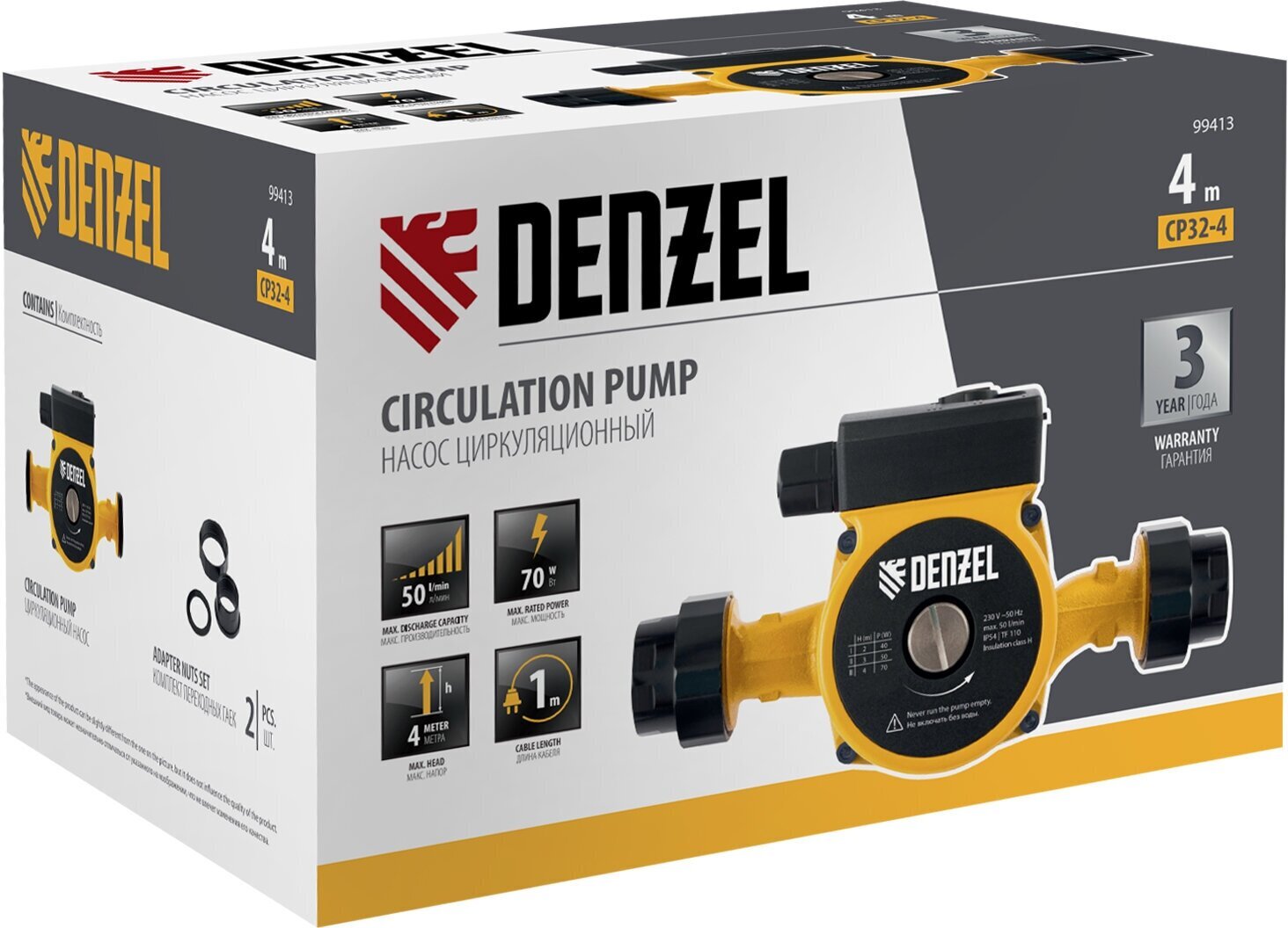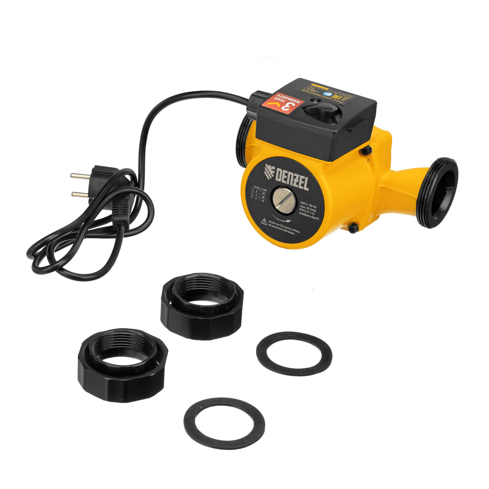 • Универсальность — насос поставляется с комплектом переходных гаек, поэтому его можно устанавливать на трубы с разной резьбой.