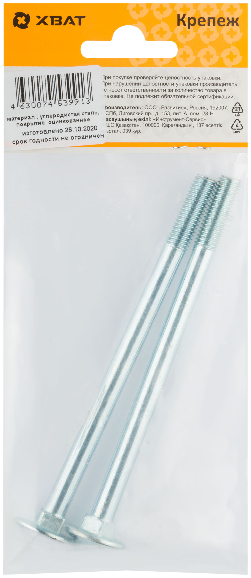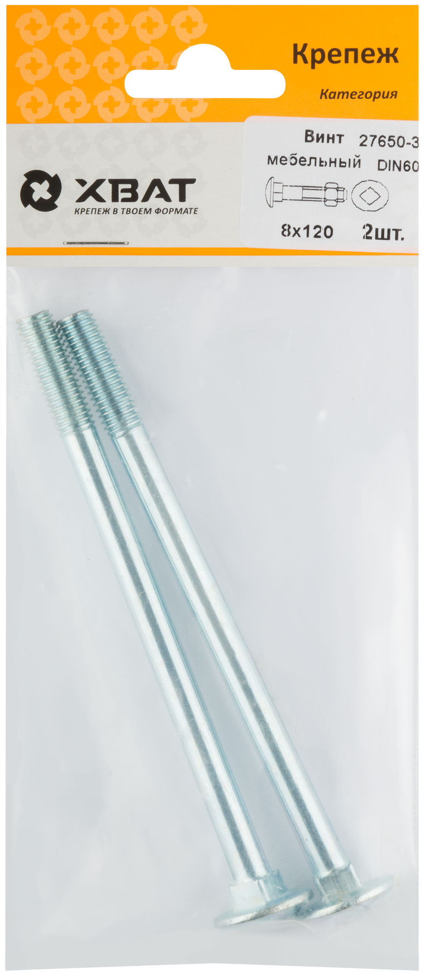 Винт мебельный DIN 603 8 х 120 (фасовка 2 шт.)