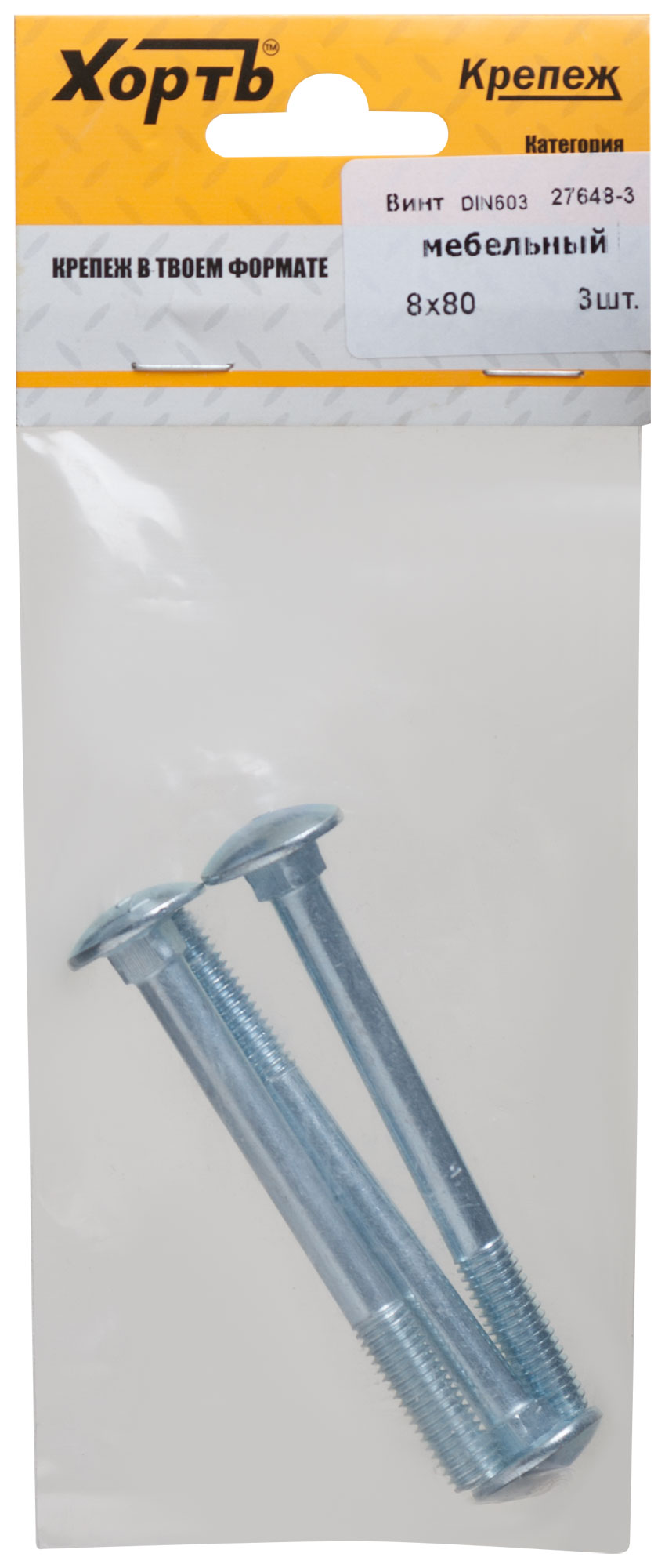 Винт мебельный DIN 603 8 х 80 (фасовка 3 шт.)