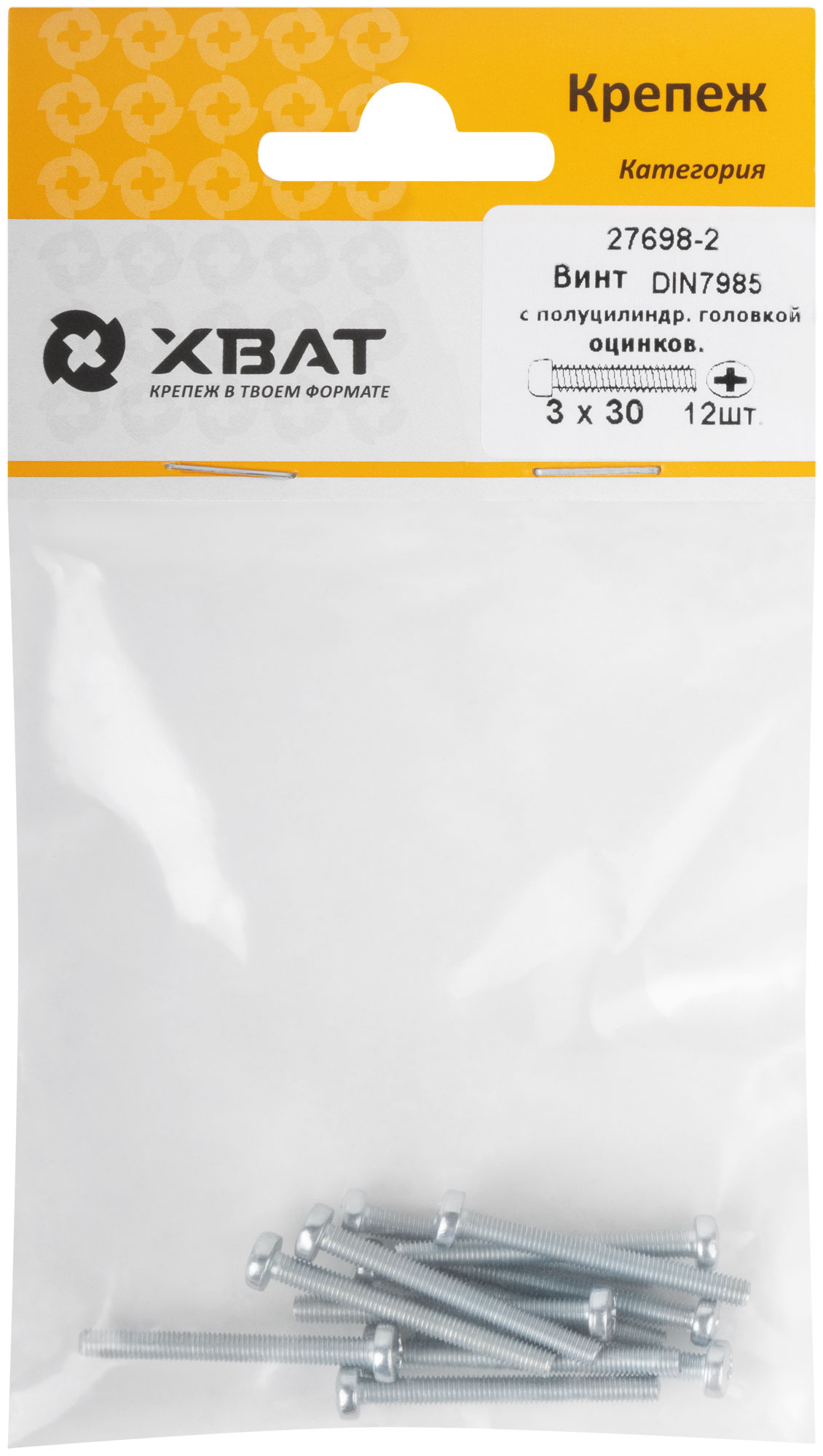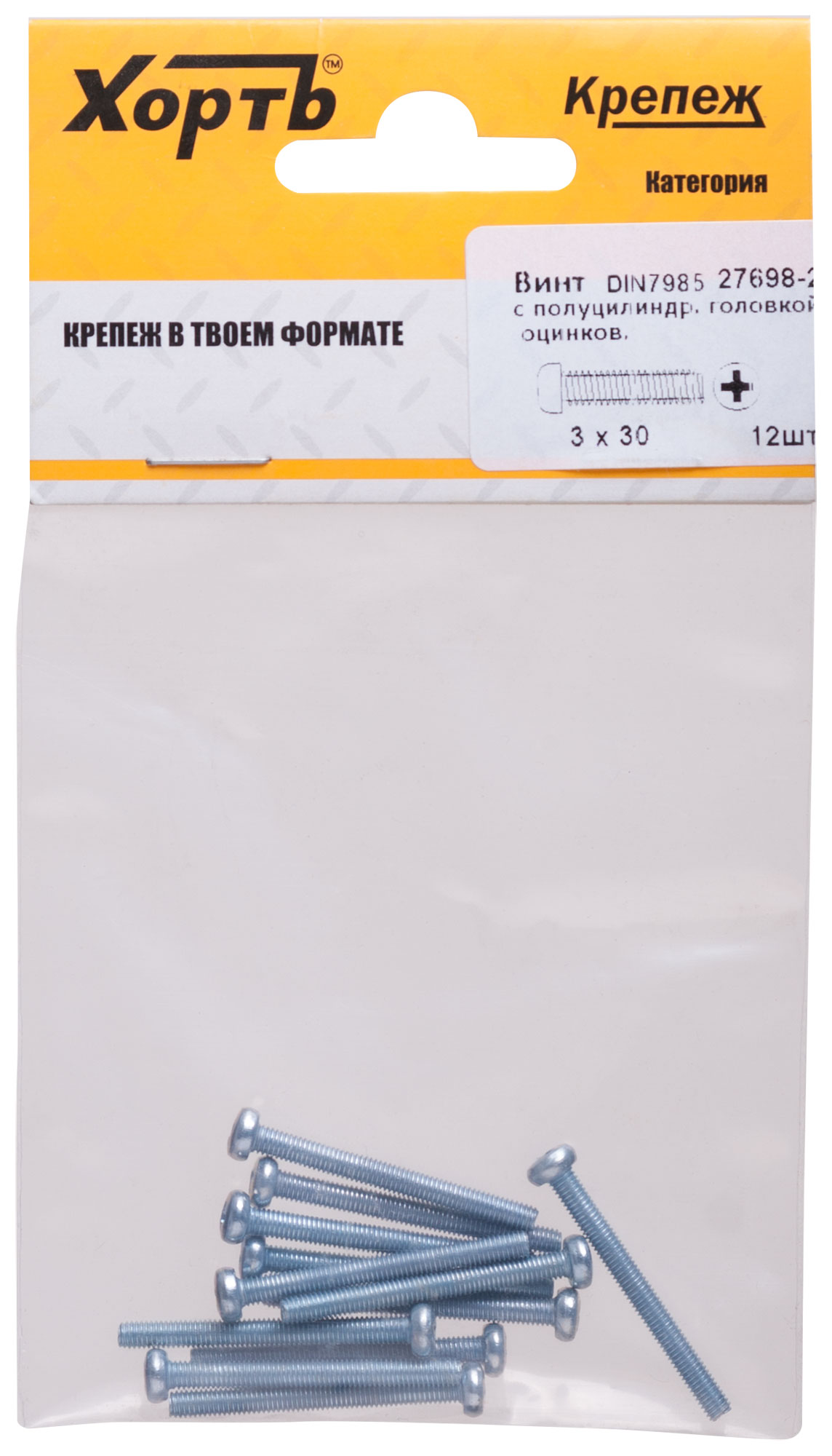 Винт с полуцилиндрич. головкой с полной резьбой оцинков. DIN 7985 3 х 30 (фасовка 12 шт.)