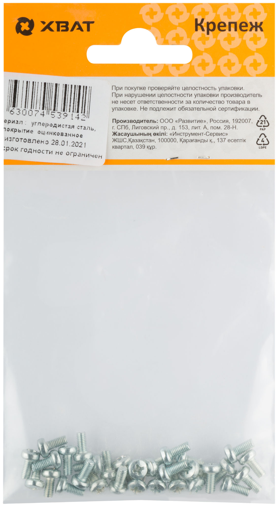 Винт с полуцилиндрич. головкой с полной резьбой оцинков. DIN 7985 3 х 6 (фасовка 30 шт.)