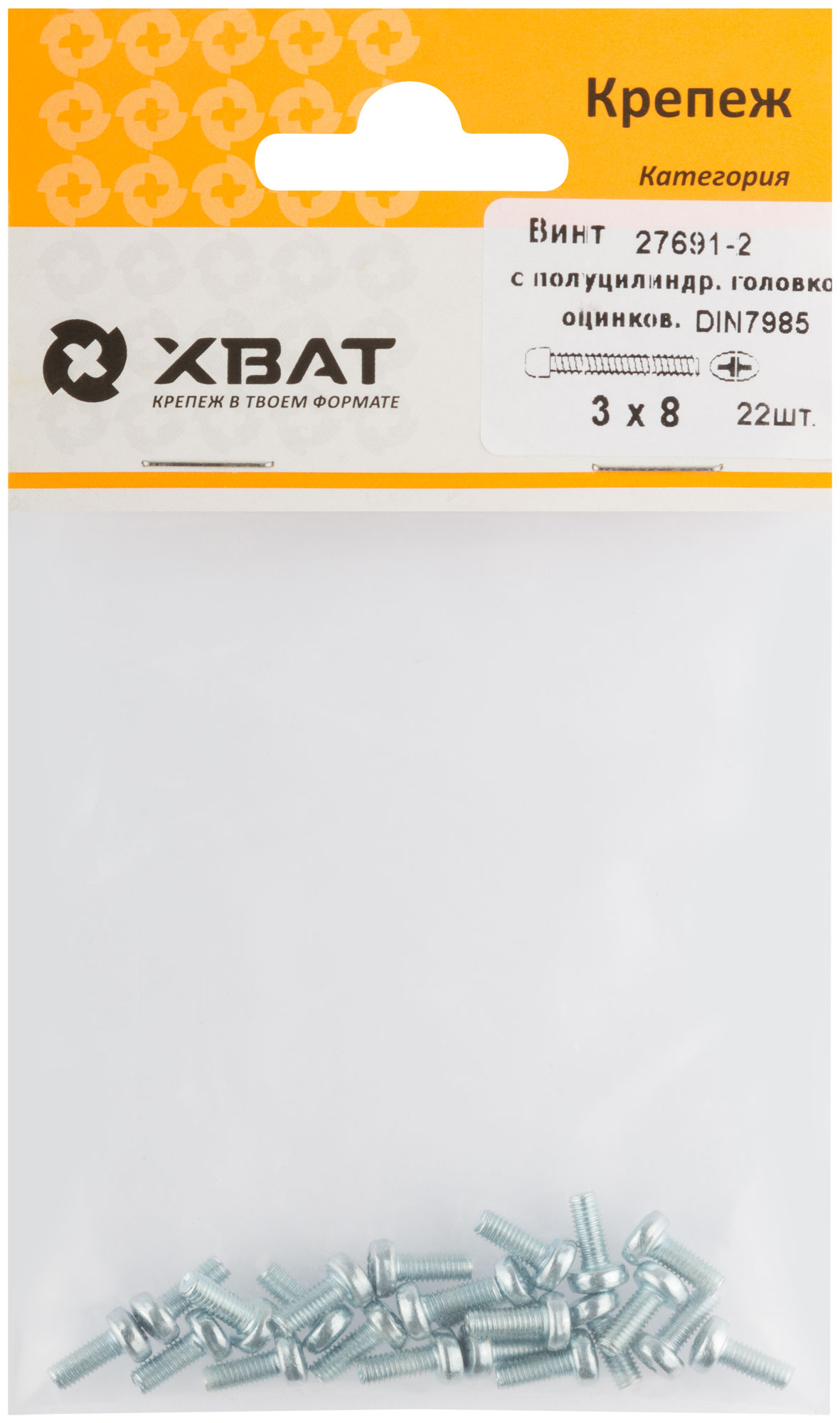 Винт с полуцилиндрич. головкой с полной резьбой оцинков. DIN 7985 3 х 8 (фасовка 22 шт.)