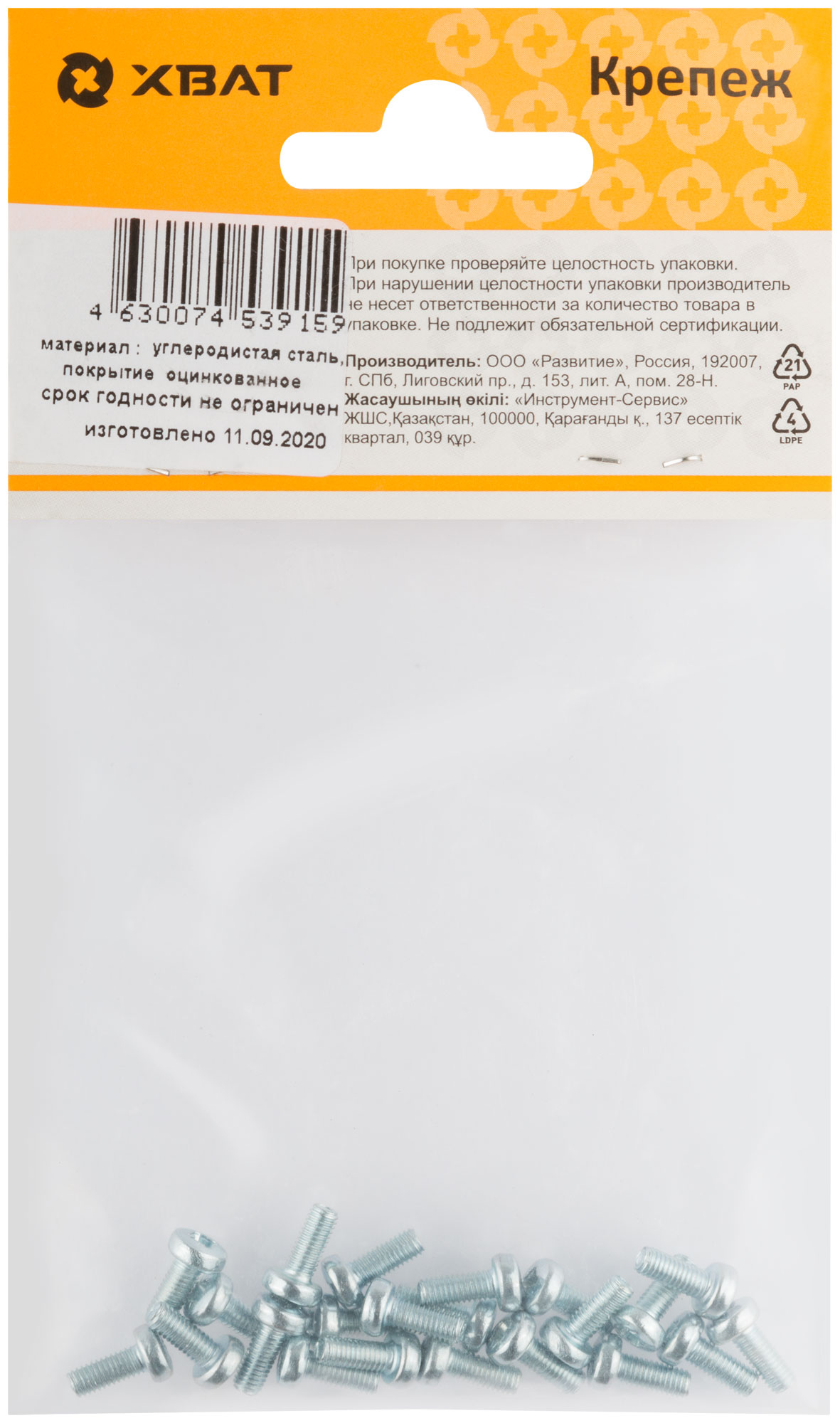 Винт с метрической резьбой и полуцилидрической головкой с крестообразным шлицем. Изготовлен из стали, оцинкован. Применяется для соединения элементов строительных материалов. Популярен при изготовлении и ремонте мебели. Класс прочности не ниже 4.8