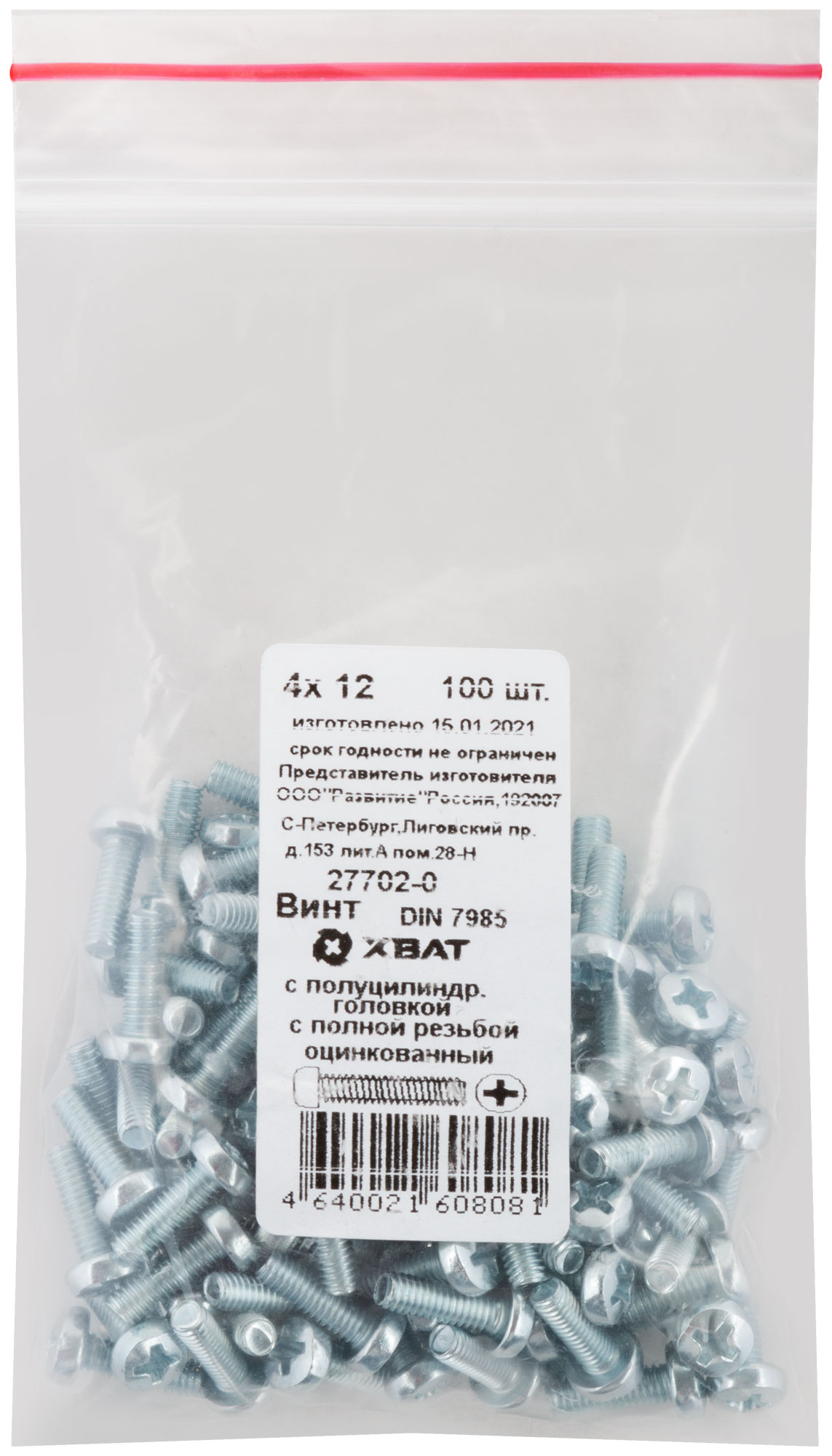 Винт с полуцилиндрич. головкой с полной резьбой оцинков. DIN 7985 4 х 12 100 шт. Фасовка
