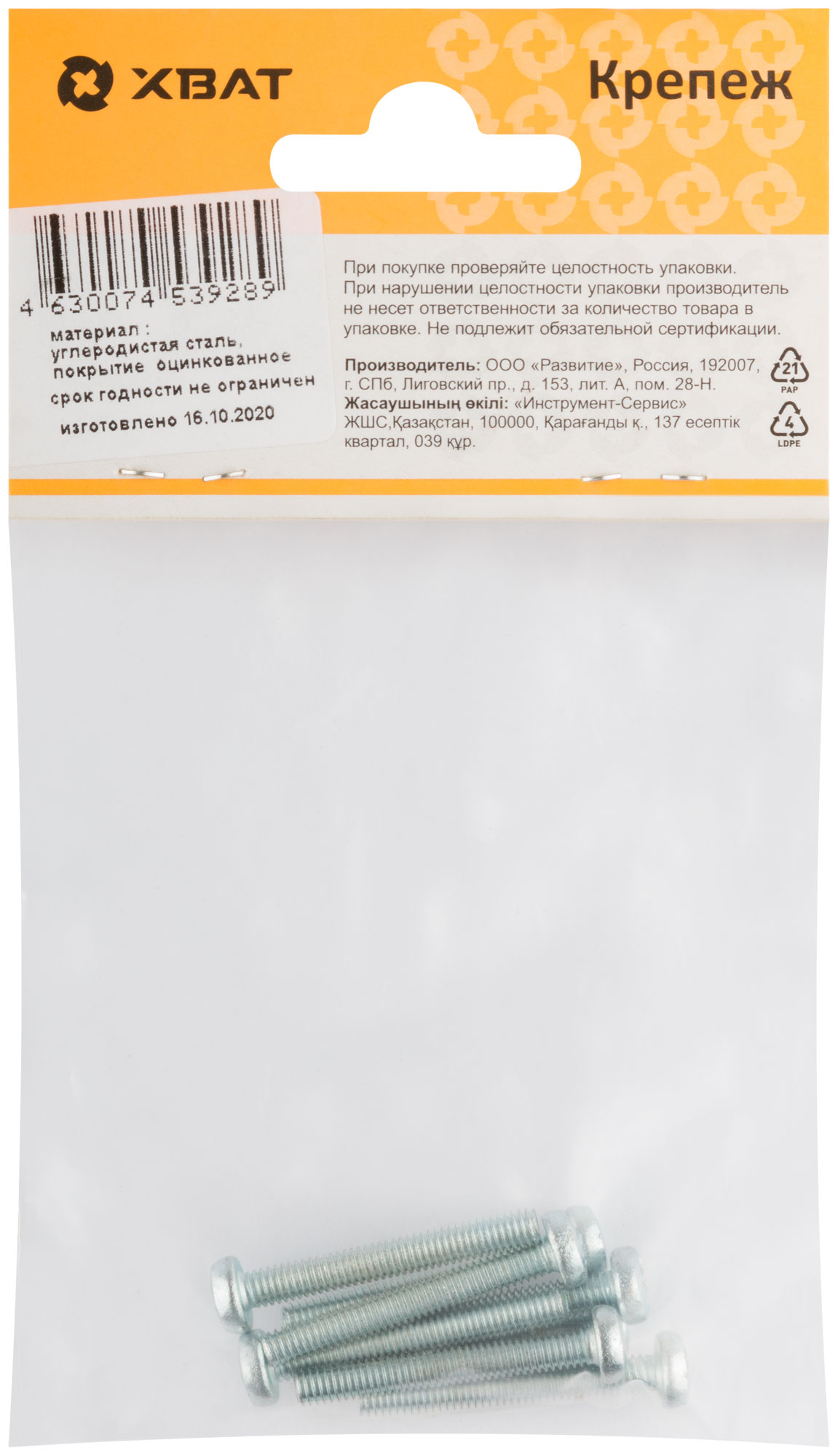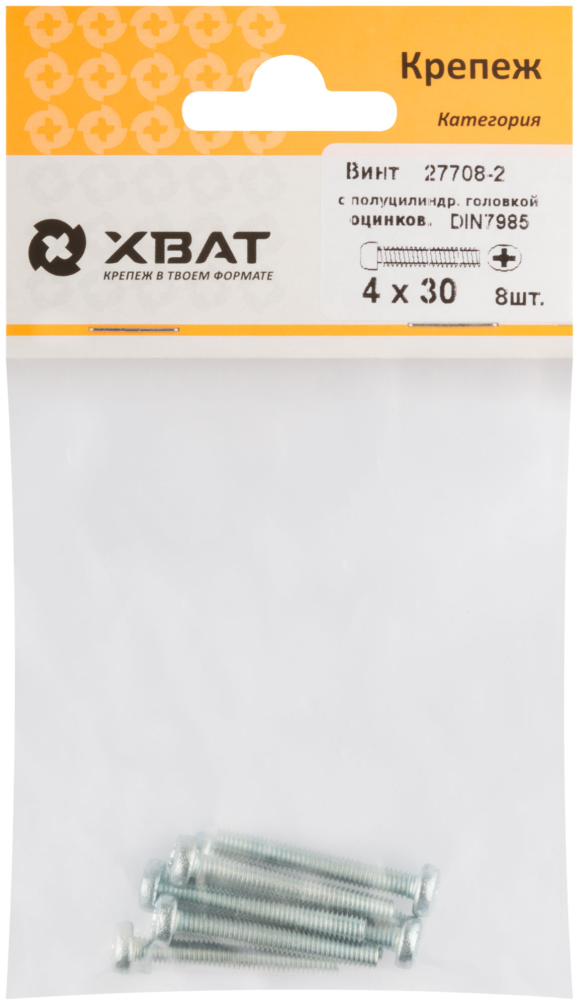 Винт с полуцилиндрич. головкой с полной резьбой оцинков. DIN 7985 4 х 30 (фасовка 8 шт.)