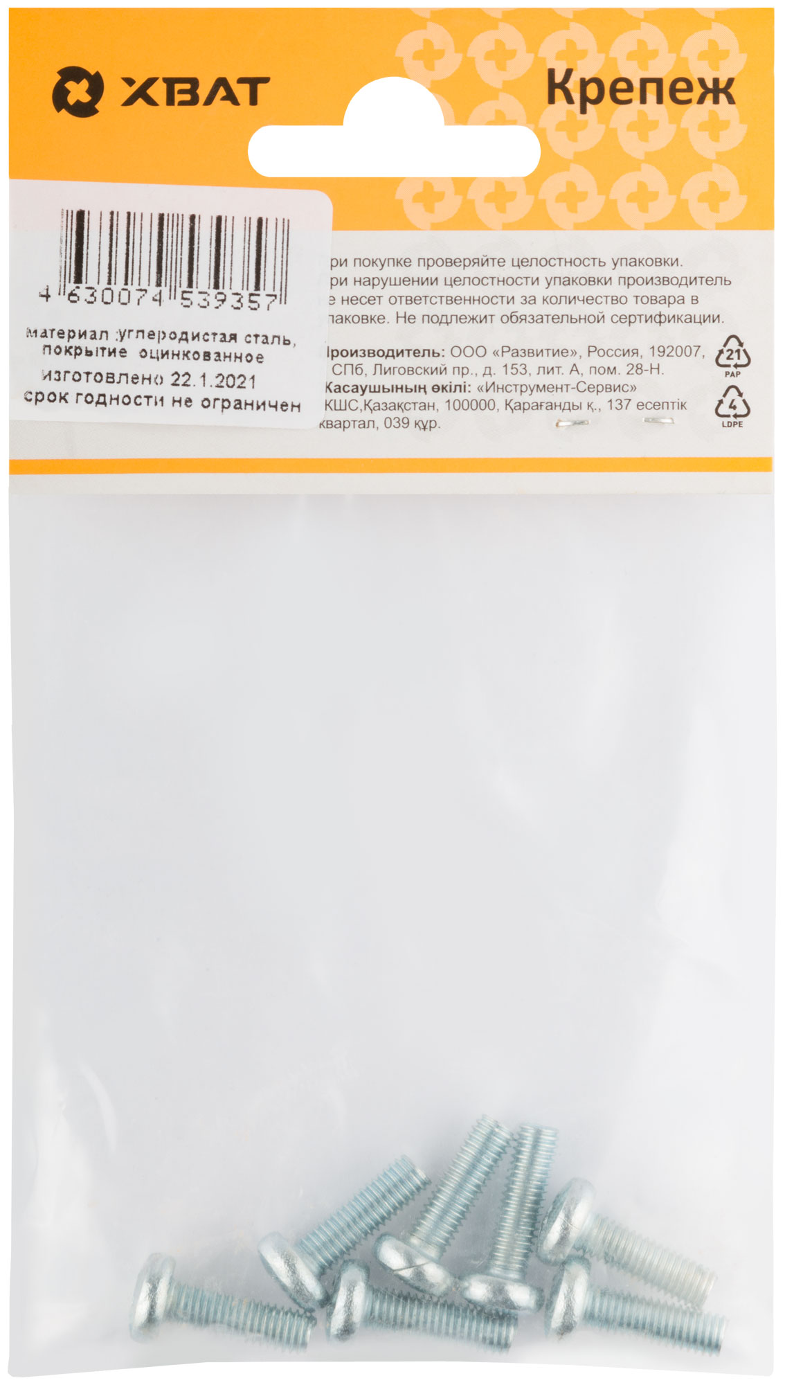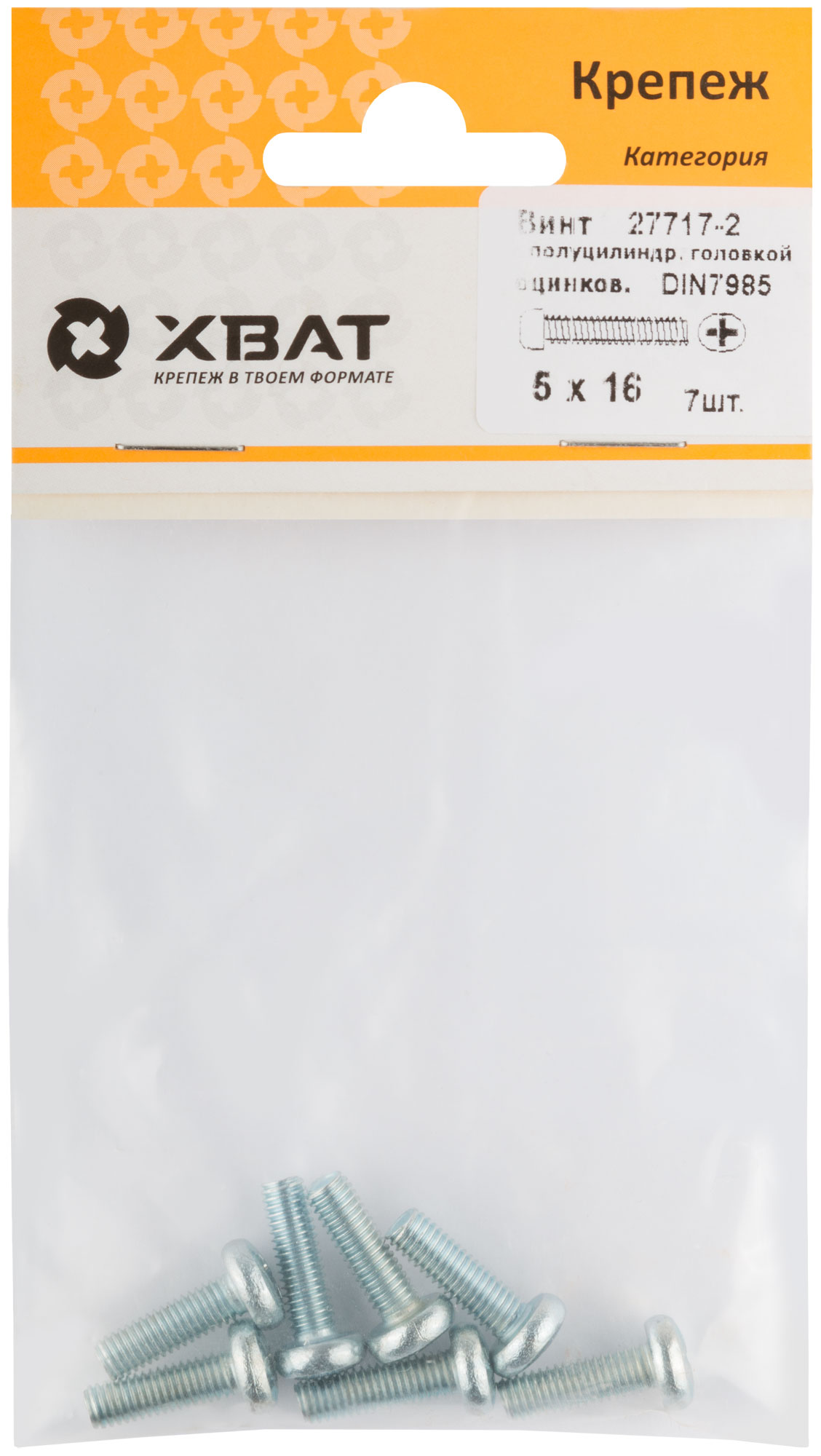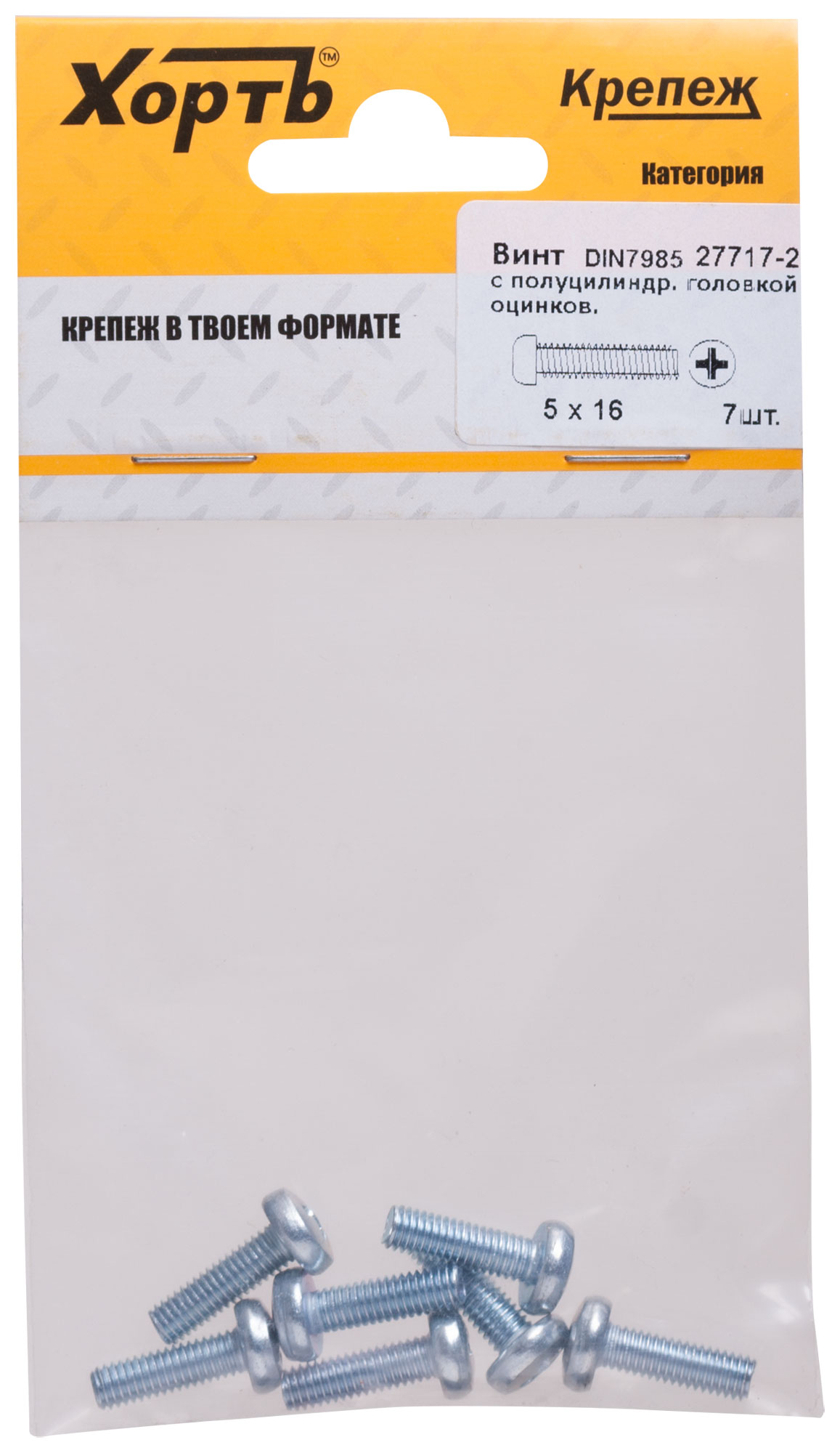 Винт с полуцилиндрич. головкой с полной резьбой оцинков. DIN 7985 5 х 16 (фасовка 7 шт.)