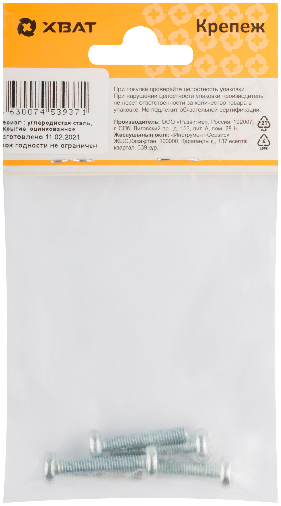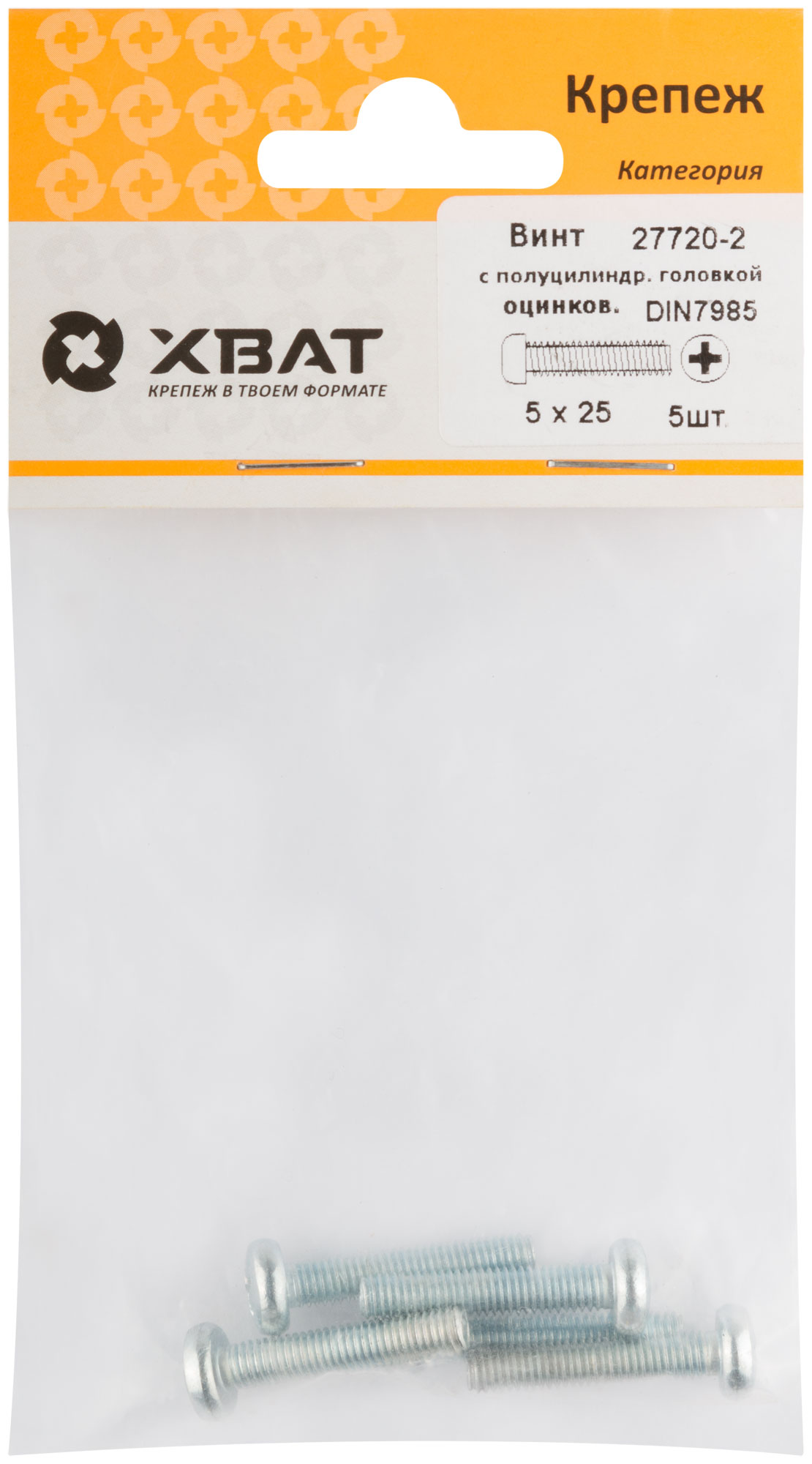 Винт с полуцилиндрич. головкой с полной резьбой оцинков. DIN 7985 5 х 25 (фасовка 5 шт.)