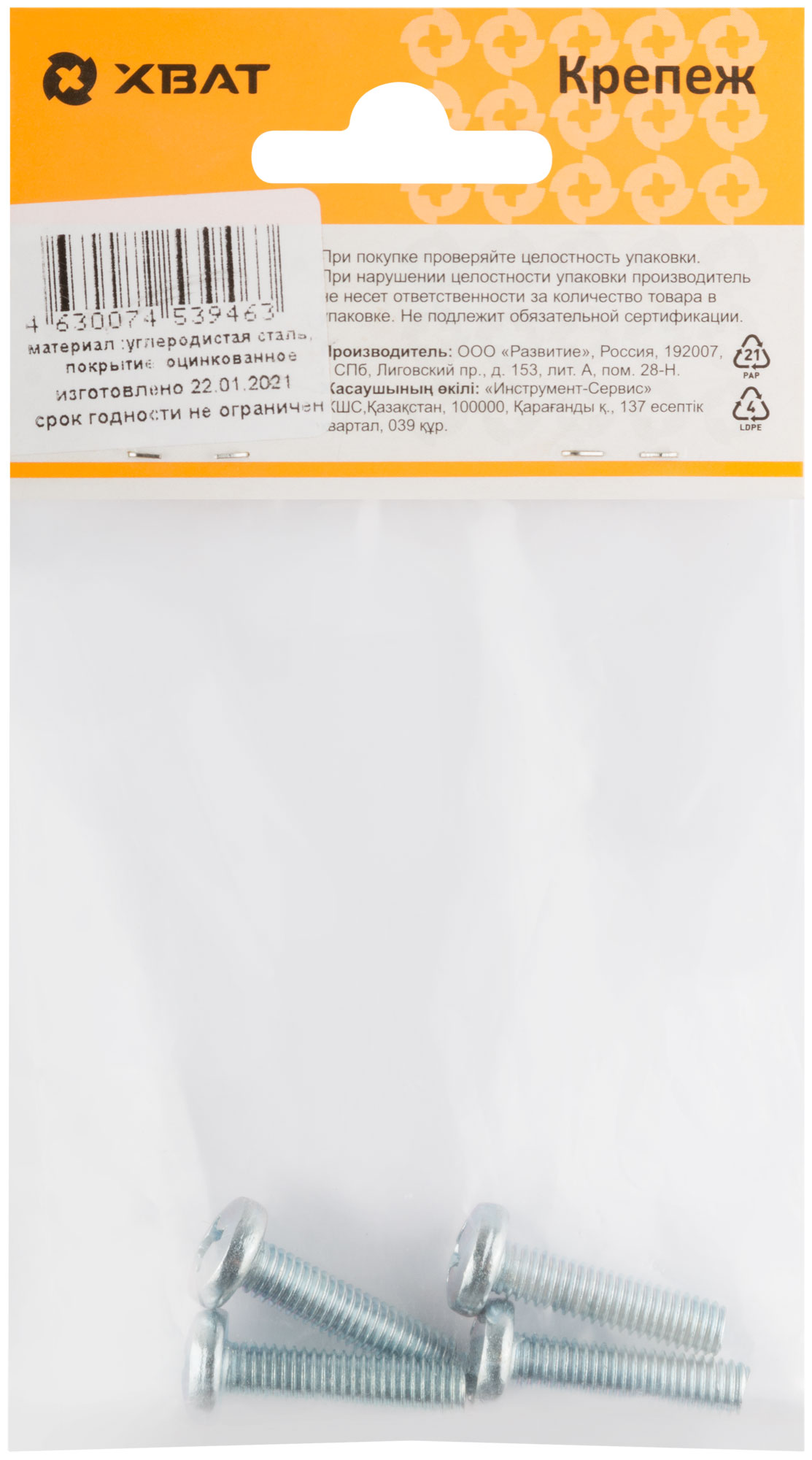 Винт с полуцилиндрич. головкой с полной резьбой оцинков. DIN 7985 6 х 25 (фасовка 4 шт.)