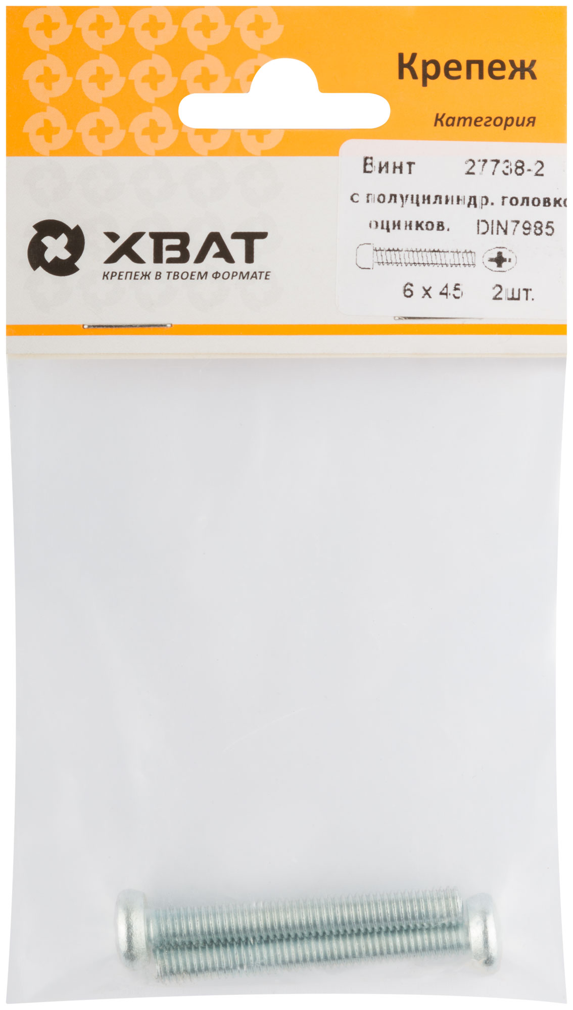 Винт с полуцилиндрич. головкой с полной резьбой оцинков. DIN 7985 6 х 45 (фасовка 2 шт.)