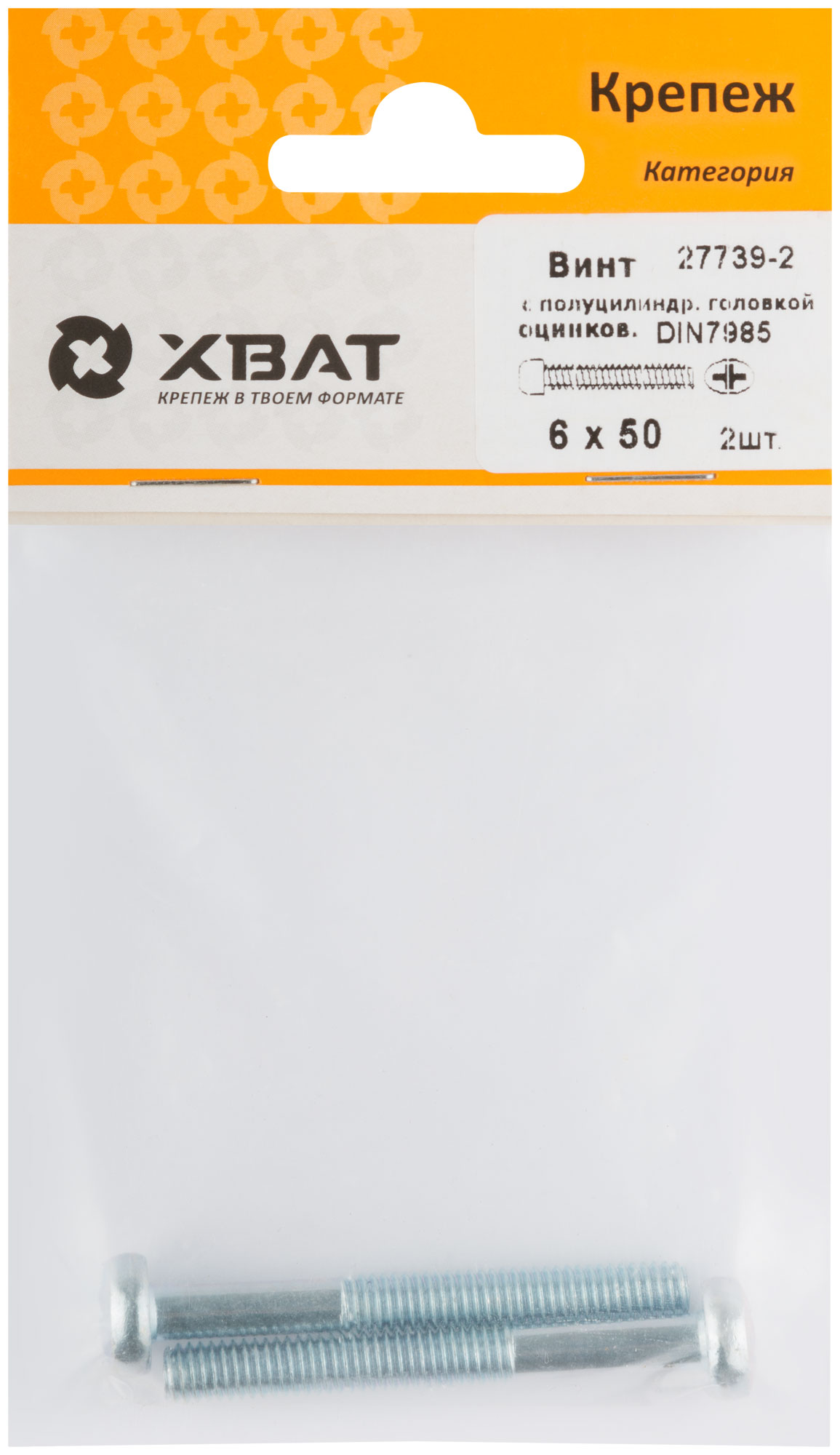 Винт с полуцилиндрич. головкой с полной резьбой оцинков. DIN 7985 6 х 50 (фасовка 2 шт.)