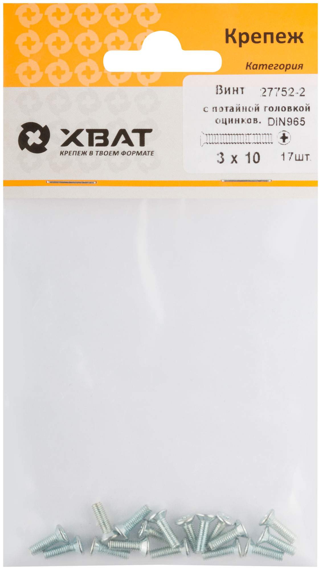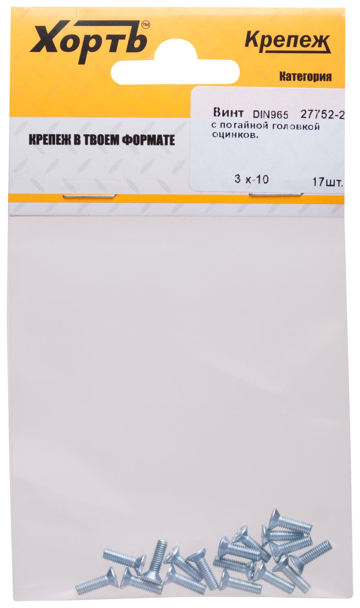 Винт с потайной головкой с полной резьбой оцинкованный DIN 965 3 х 10 (фасовка 17 шт.)