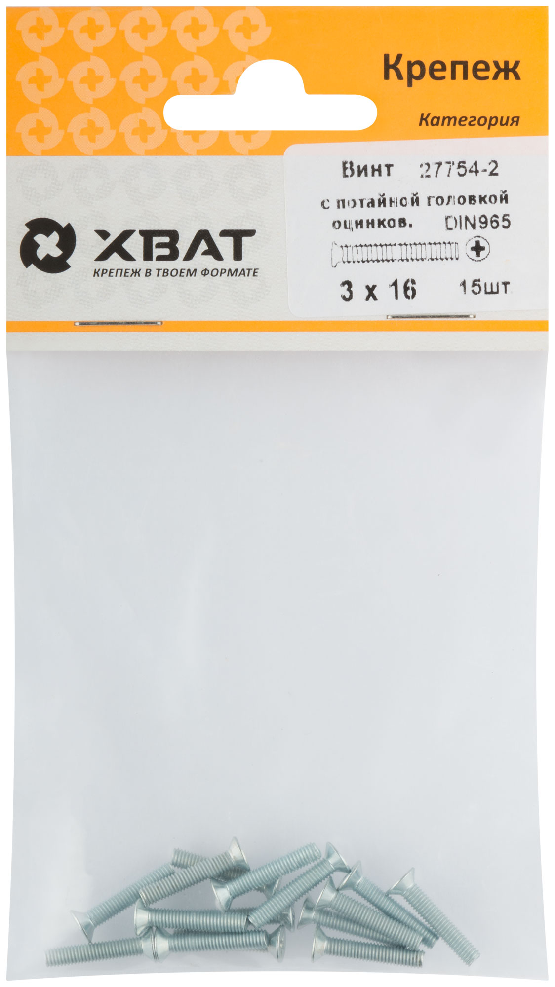 Винт с потайной головкой с полной резьбой оцинкованный DIN 965 3 х 16 (фасовка 15 шт.)