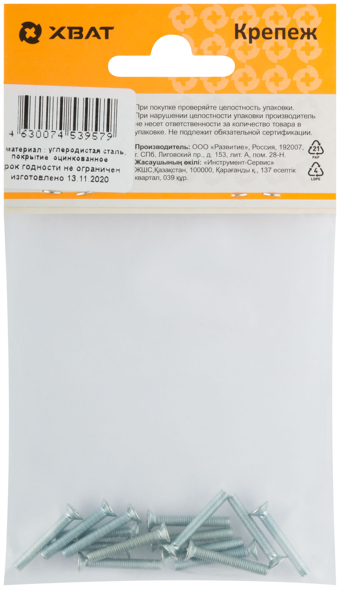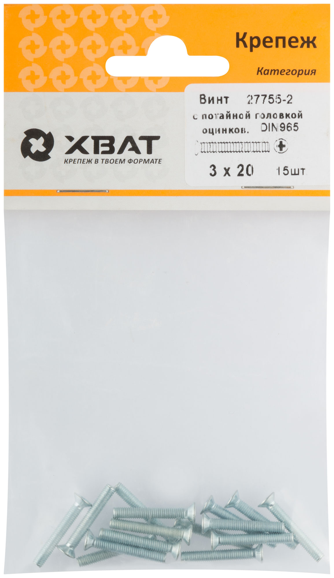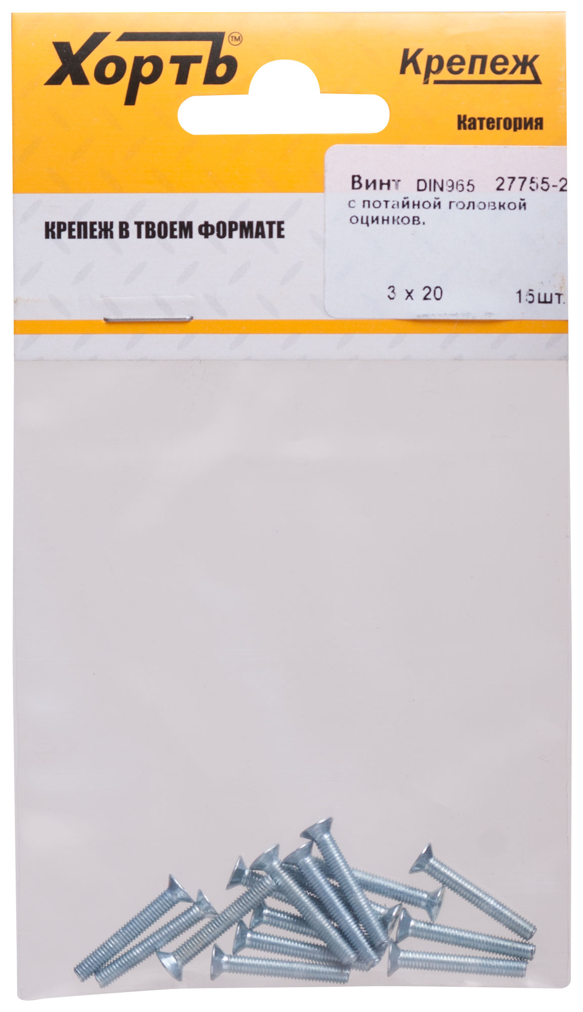 Винт с потайной головкой с полной резьбой оцинкованный DIN 965 3 х 20 (фасовка 15 шт.)