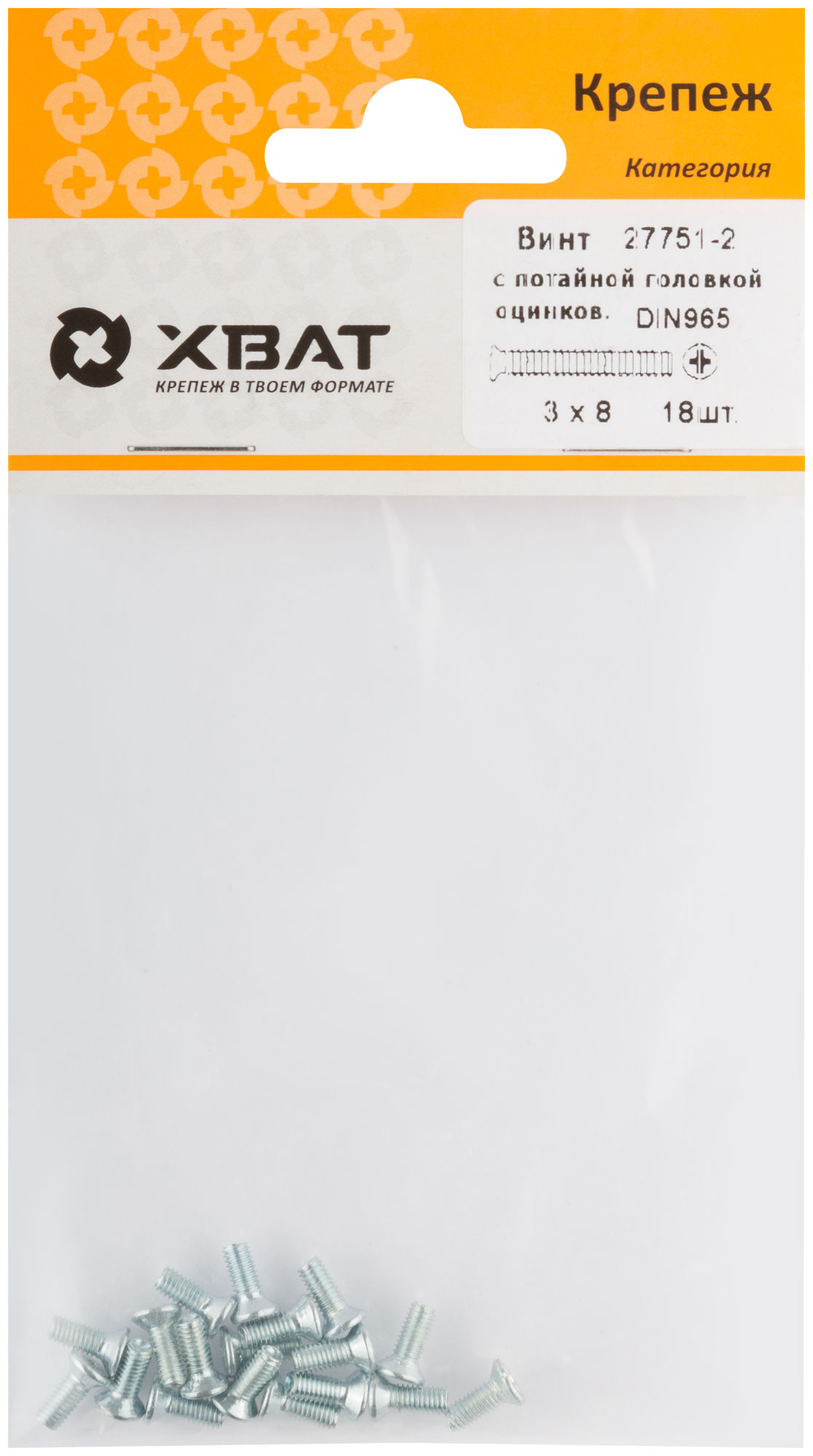 Винт с потайной головкой с полной резьбой оцинкованный DIN 965 3 х 8 (фасовка 18 шт.)