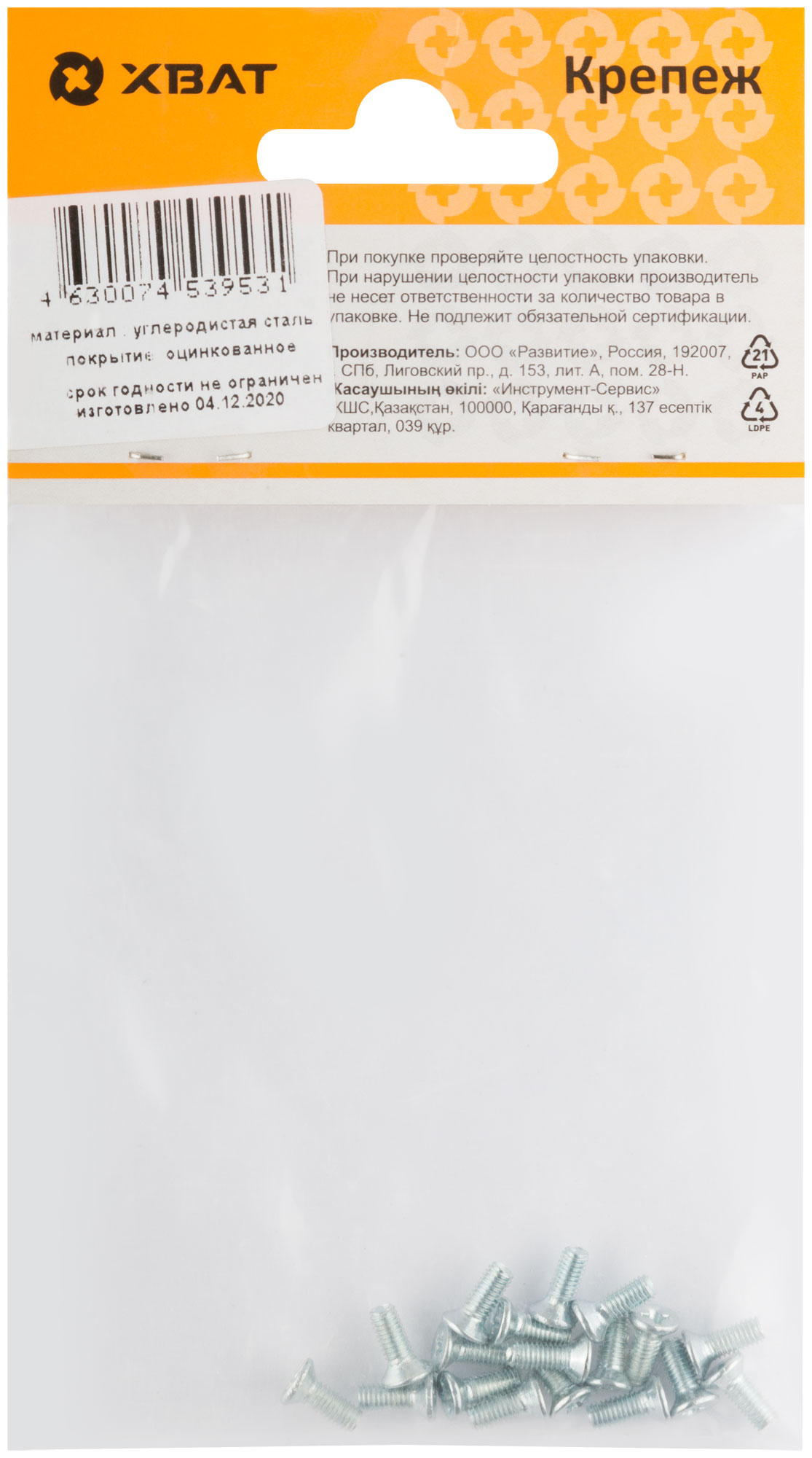 Винт с метрической резьбой и потайной головкой с крестообразным шлицем. Изготовлен из стали, оцинкован. Применяется для соединения элементов строительных материалов. Популярен при изготовлении и ремонте мебели. Класс прочности не ниже 4.8