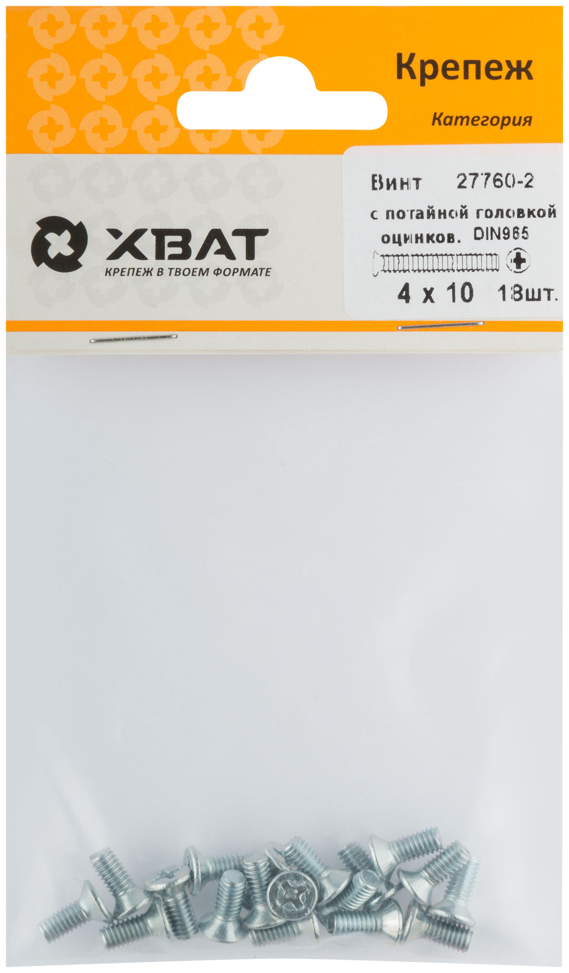 Винт с потайной головкой с полной резьбой оцинкованный DIN 965 4 х 10 (фасовка 18 шт.)
