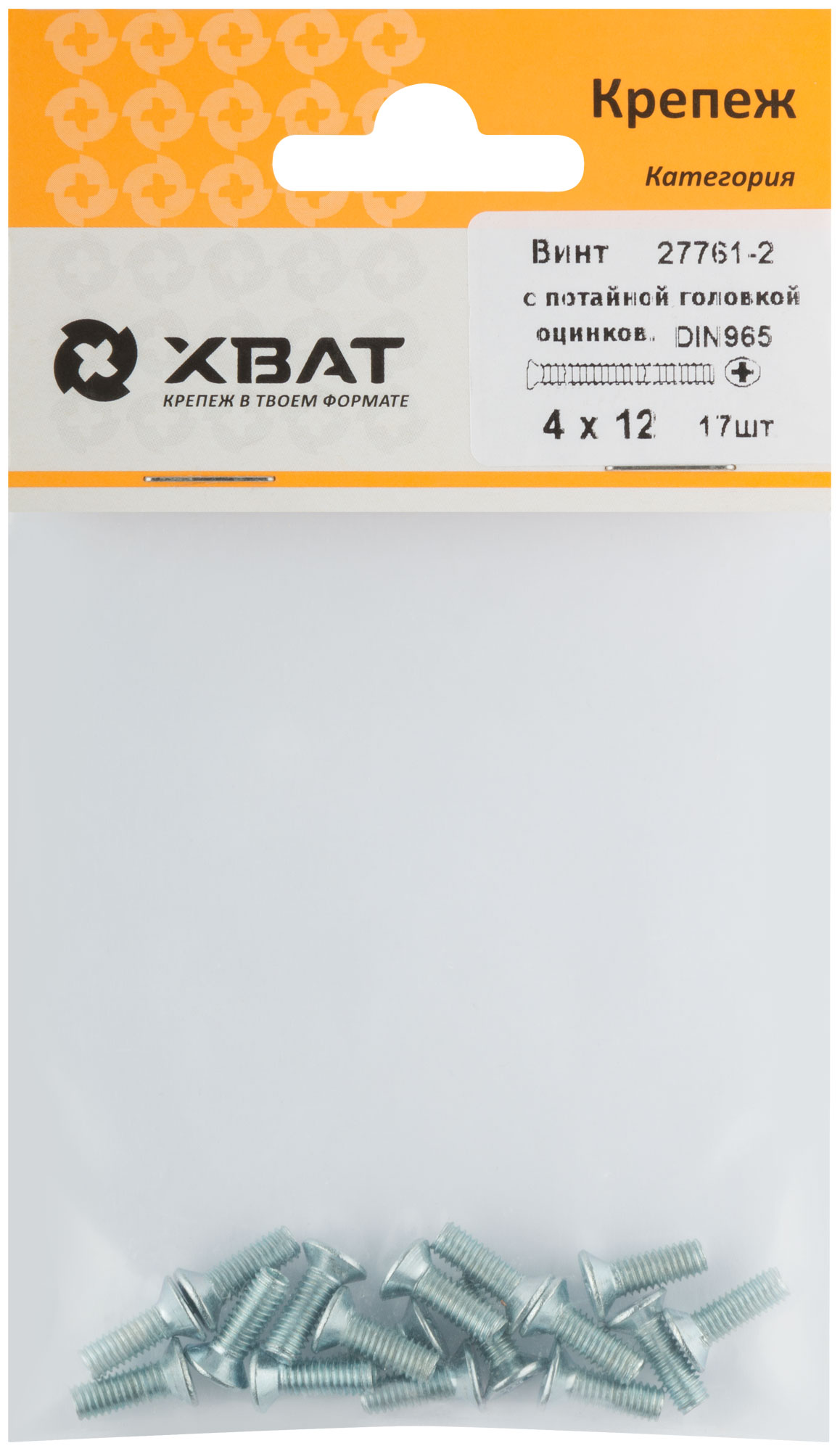 Винт с потайной головкой с полной резьбой оцинкованный DIN 965 4 х 12 (фасовка 17 шт.)