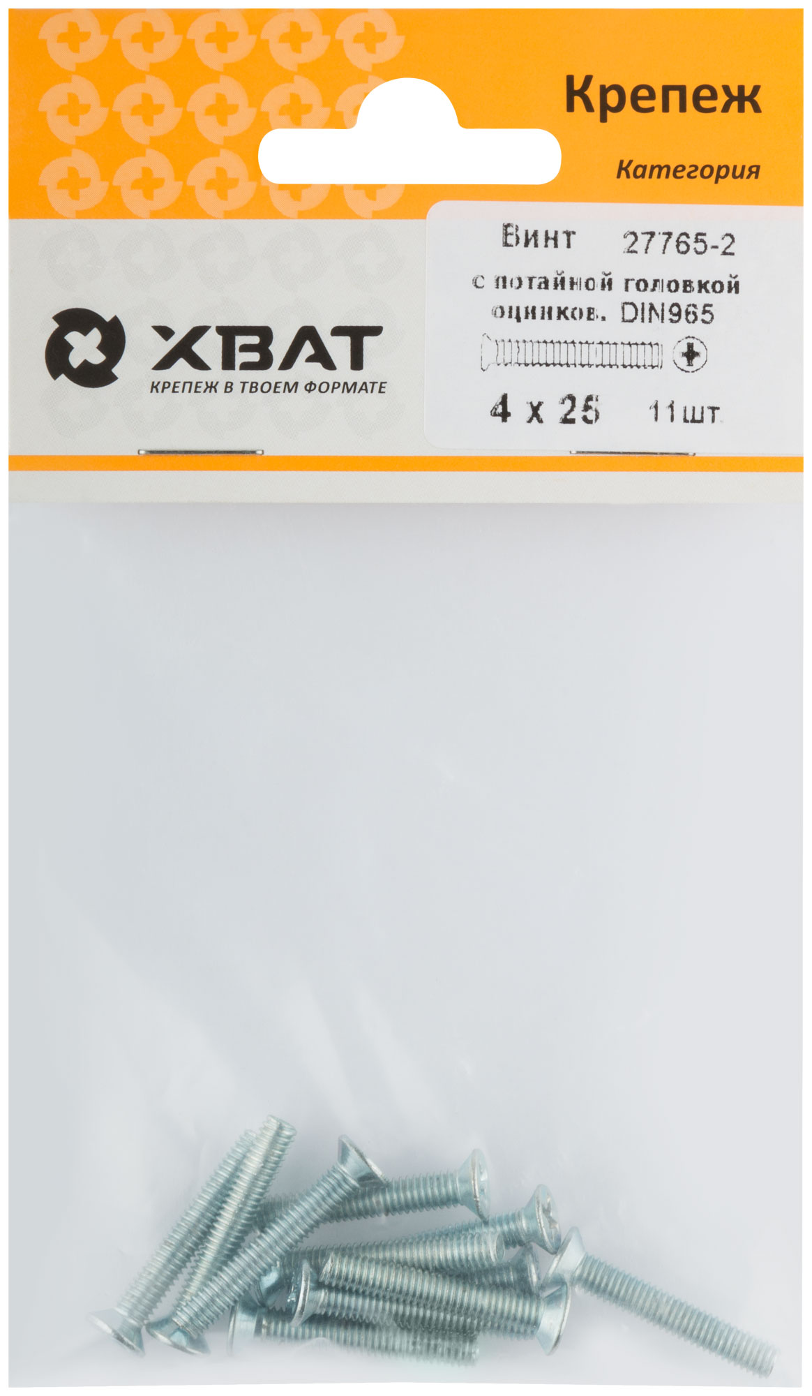 Винт с потайной головкой с полной резьбой оцинкованный DIN 965 4 х 25 (фасовка 11 шт.)