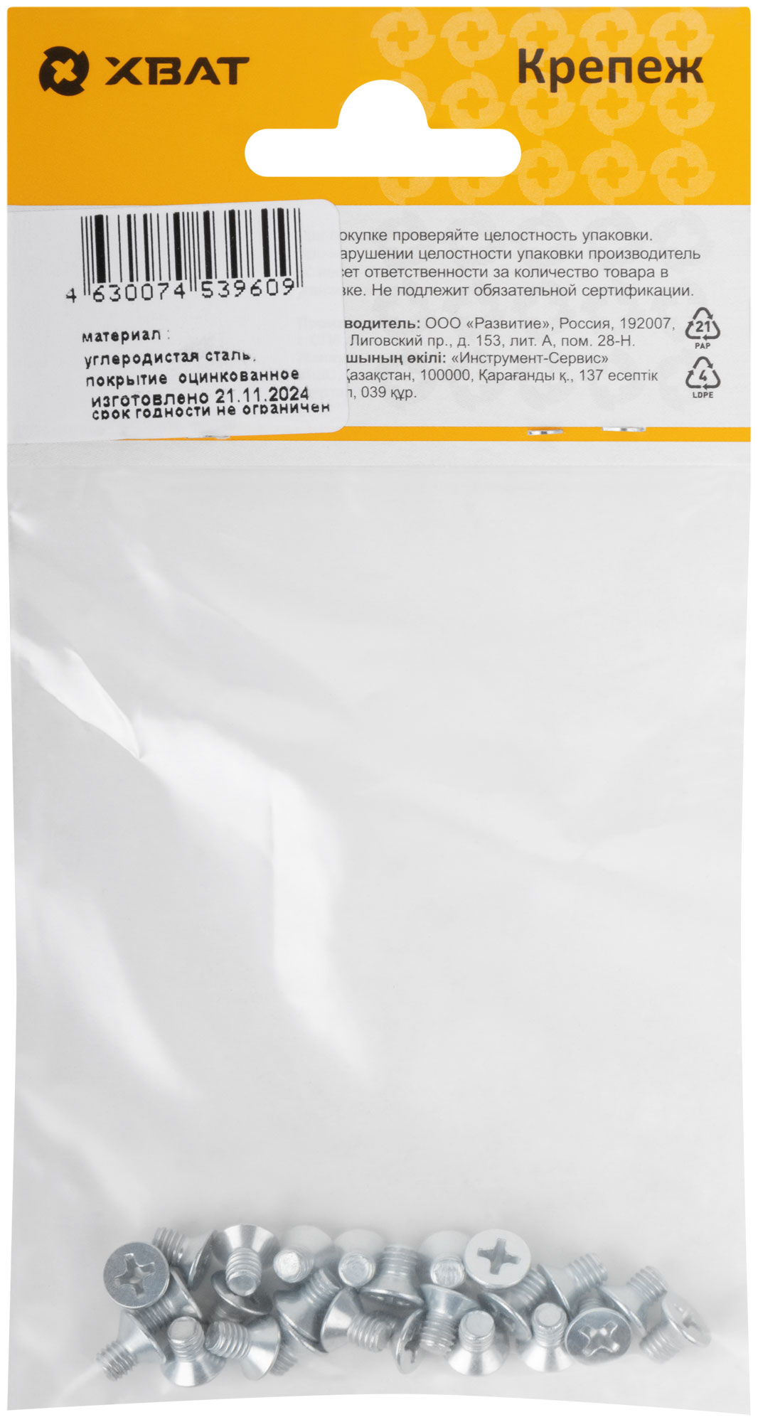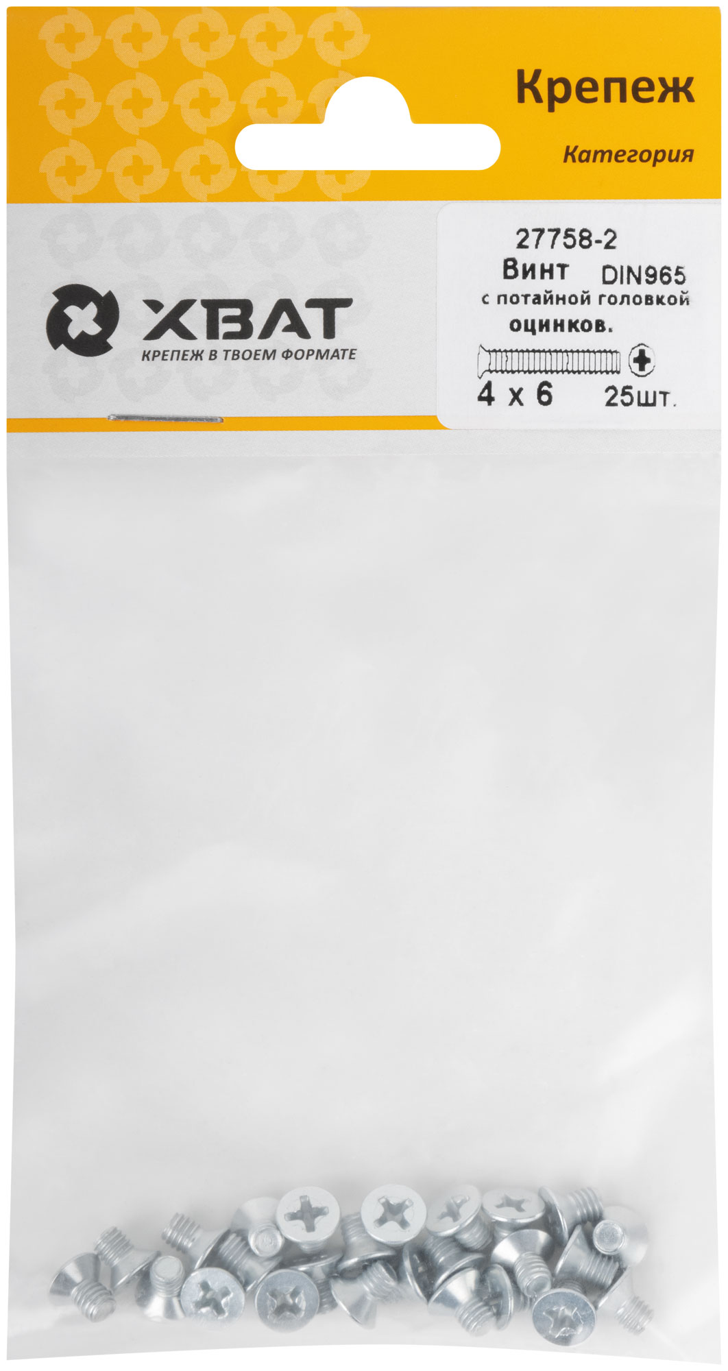 Винт с потайной головкой с полной резьбой оцинкованный DIN 965 4 х 6 (фасовка 25 шт.)