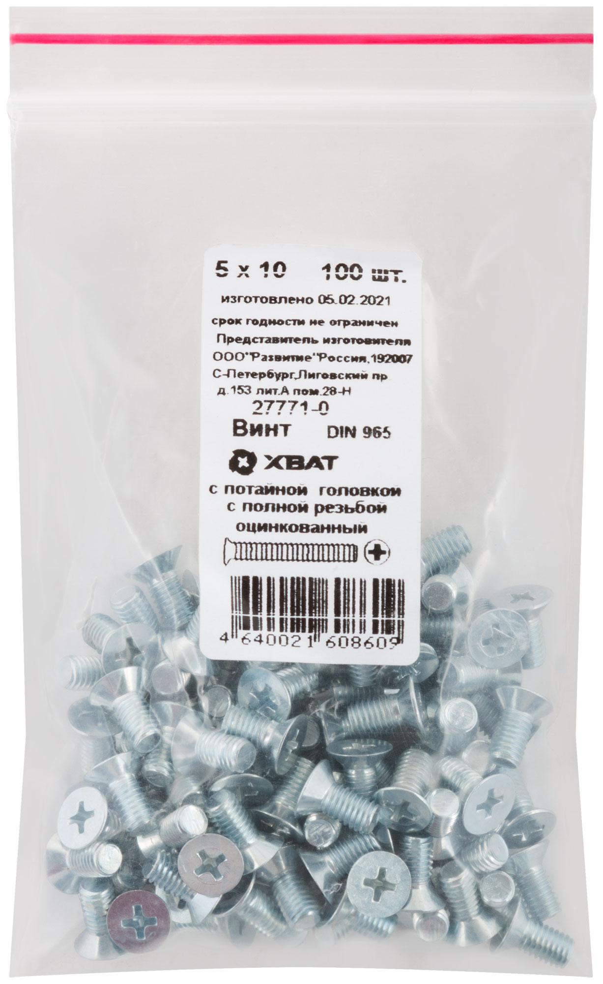 Винт с потайной головкой с полной резьбой оцинкованный DIN 965 5 х 10 100 шт. Фасовка