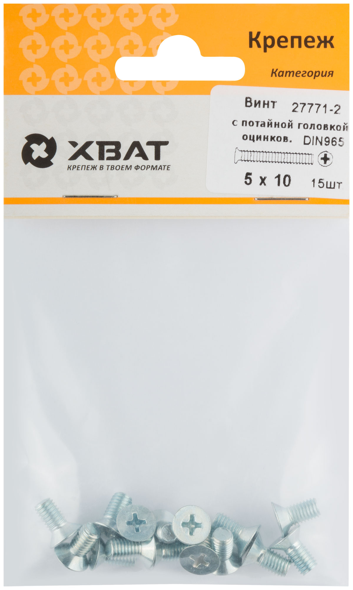 Винт с потайной головкой с полной резьбой оцинкованный DIN 965 5 х 10 (фасовка 15 шт.)